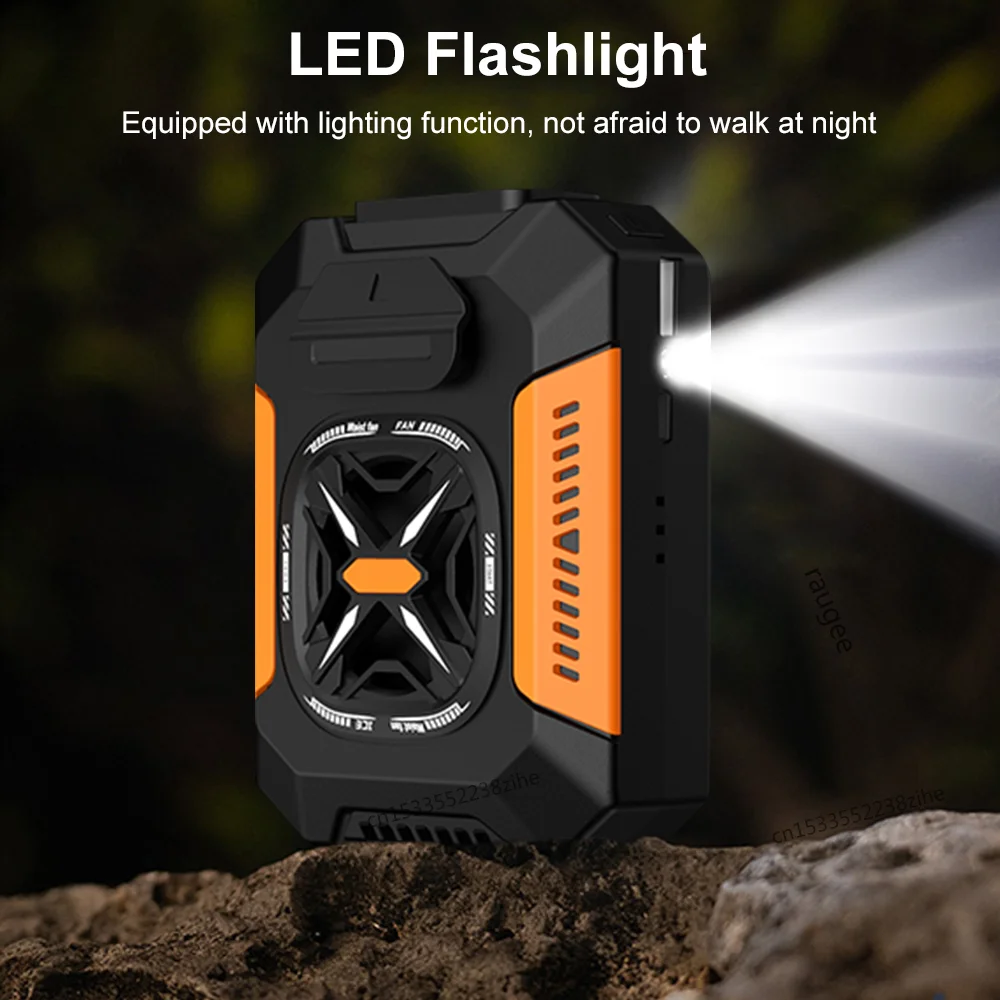 Waist Fan 5000mAh Rechargeable Portable Bladeless Air Conditioner Fan Outdoor Sport Waist Clip Fan with Power Bank Flashlight