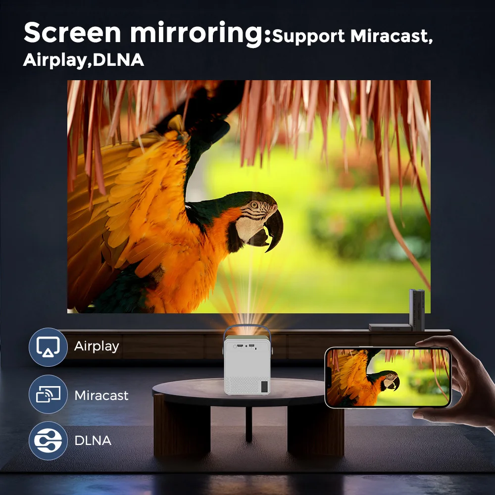 5. Built-in WiFi6: You can easily mirror your apps (music, games, and sports) from Android/Apple devices to the projector.