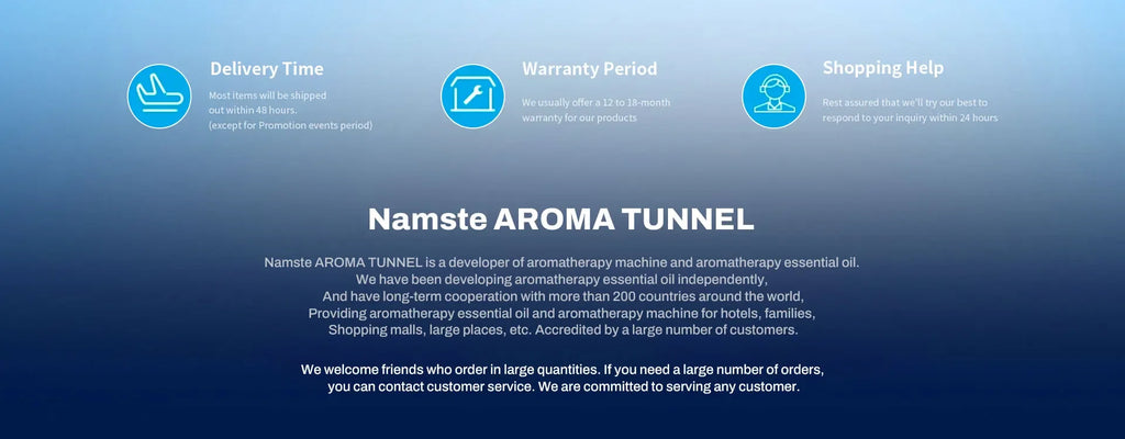 NAMSTE independent research and development, there are hundreds of different smells of aromatherapy essential oils, choose more. The company has a good reputation, without any dilution of essential oils, and has been well received by customers. In addition, we will deliver the goods within 24 hours after receiving the order, and we know the customs, tariffs, etc. of each country very well, which can help customers receive the goods better.