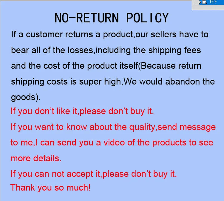 Make sure you need this product before making a purchase. If you do not confirm the model, you can contact customer service. If you return the product, it will be returned to the AliExpress warehouse for destruction and cannot be returned to us. We are also responsible for transportation costs, platform transaction taxes, goods destruction and processing fees. For us, the losses are very significant, and you may be blacklisted and receive a one star rating. Please shop rationally. friend
