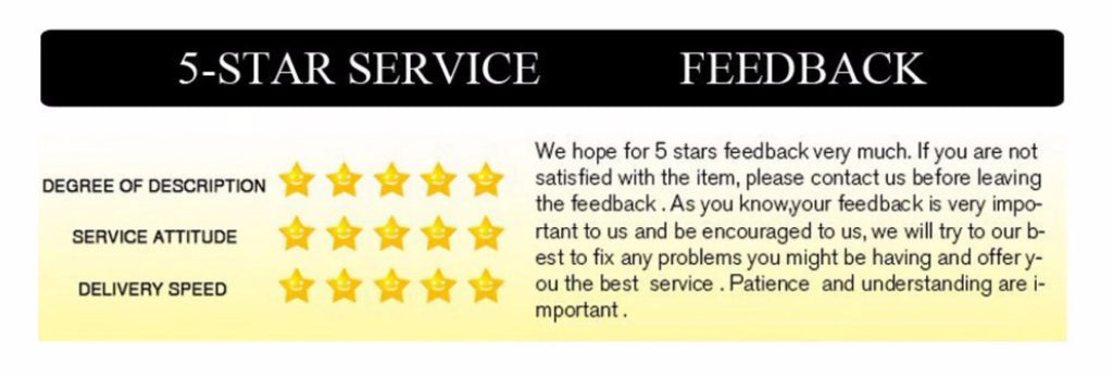 1. when you receive our goods ,if satisfied ,please give us a good rating(5 stars).It is very important
