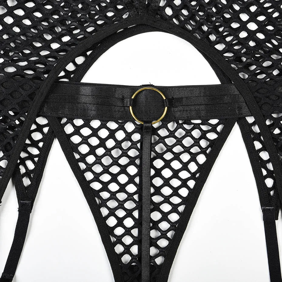 JSY Sexy Lingerie Set For Women's Body Underwear Transparent Mesh Nightgown Bodysuit Sleepwear Erotic Lingerie Porno Costumes