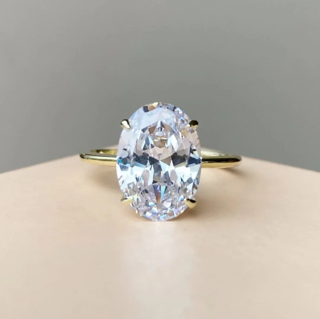 New Hot Selling Gold Plated Rings For Women Oval Cubic Zirconia Jewelry Wedding Engagement Ring Wholesale Size 5-10