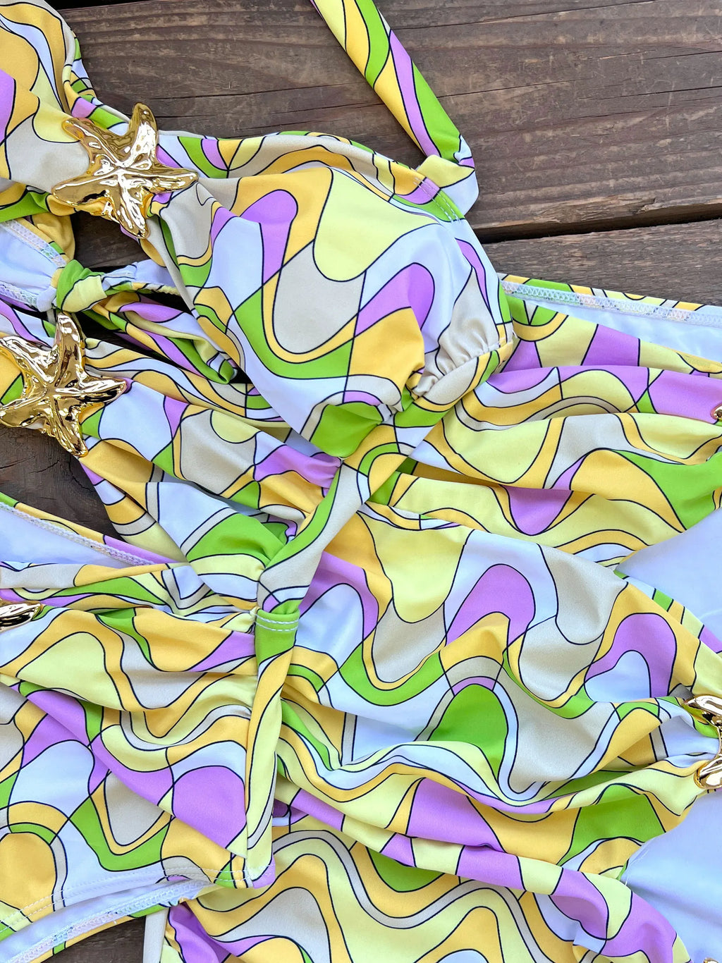 Sexy Starfish Bikini Set With Skirt Women Two-Pieces Swimsuit 2025 New High Fork Skirt Set Biquini Swimwear For Girl Clothing