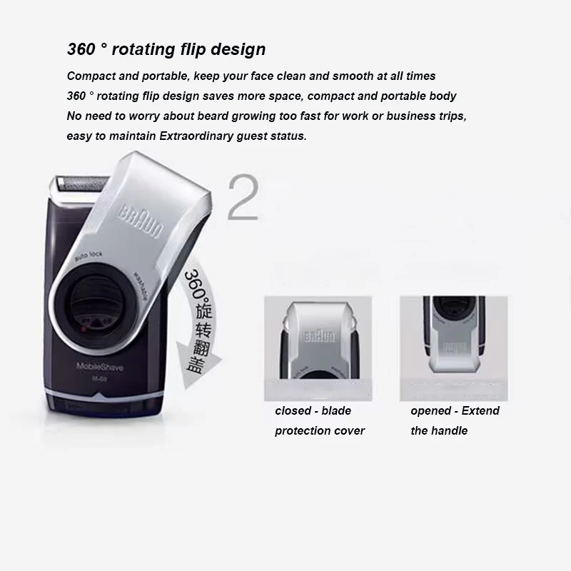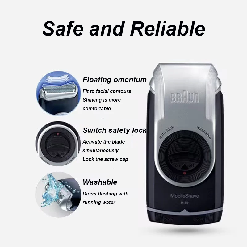 Braunn Shaver M60S Electric Razor Battery Portable Mobile Shave Washable Mini Shaver Beard Shaving Machine For Men