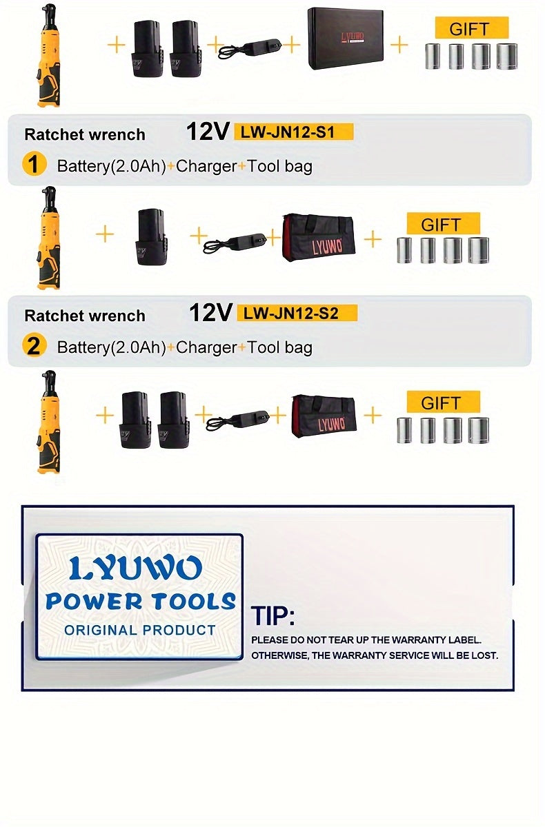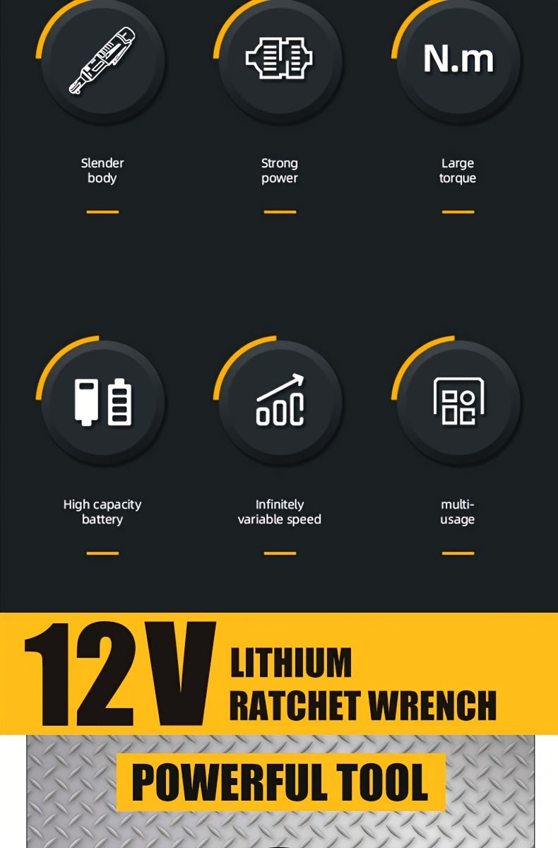 LYUWO 1 Set 12V Cordless Electric Wrench, 45NM 3/8'' Ratchet Illuminated Remove Screws & Nuts Automotive Repair Tool, Right Angle Wrench, Power Tools