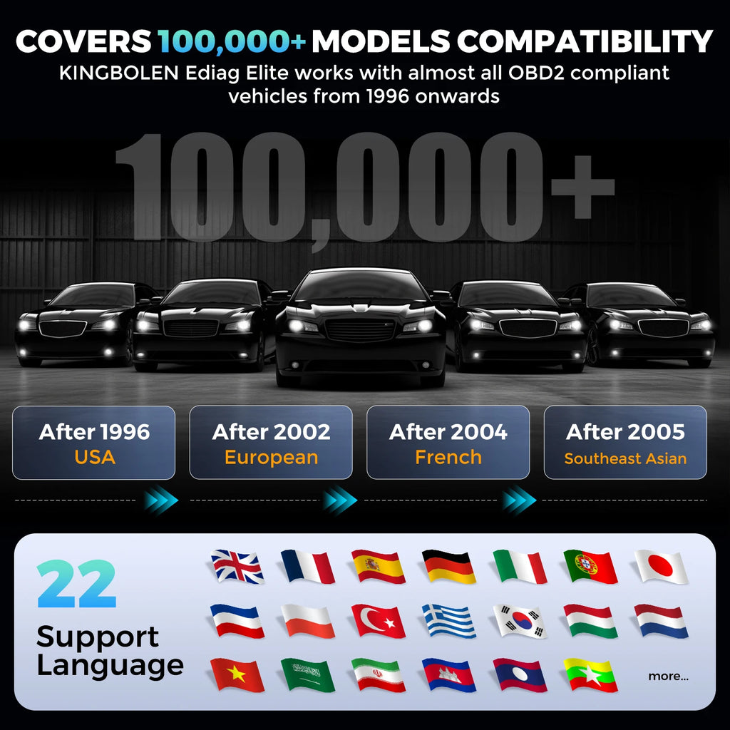 KINGBOLEN Ediag Elite can be detect almost all vehicles in America, Europe, and Asia Pacific regions with OBD port.