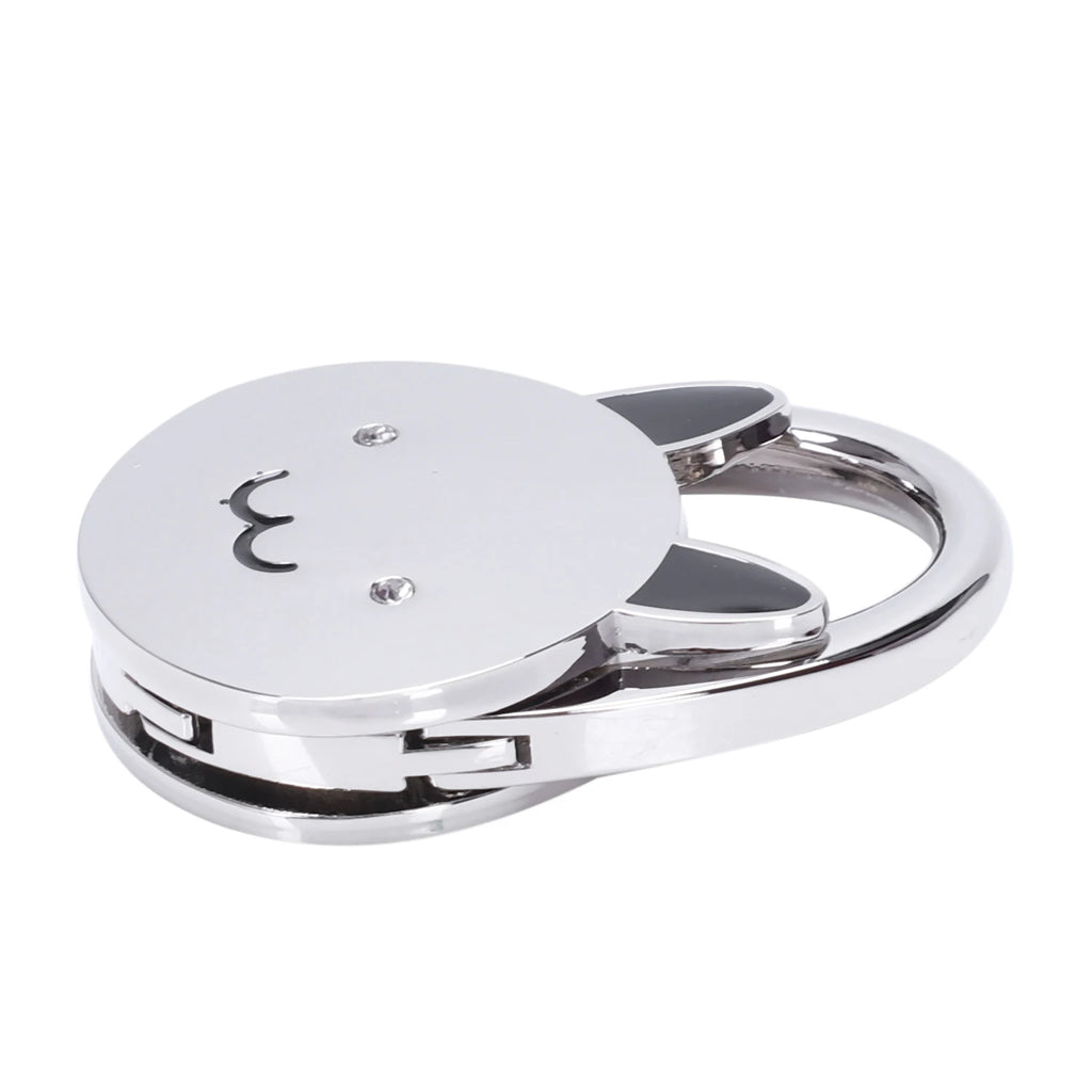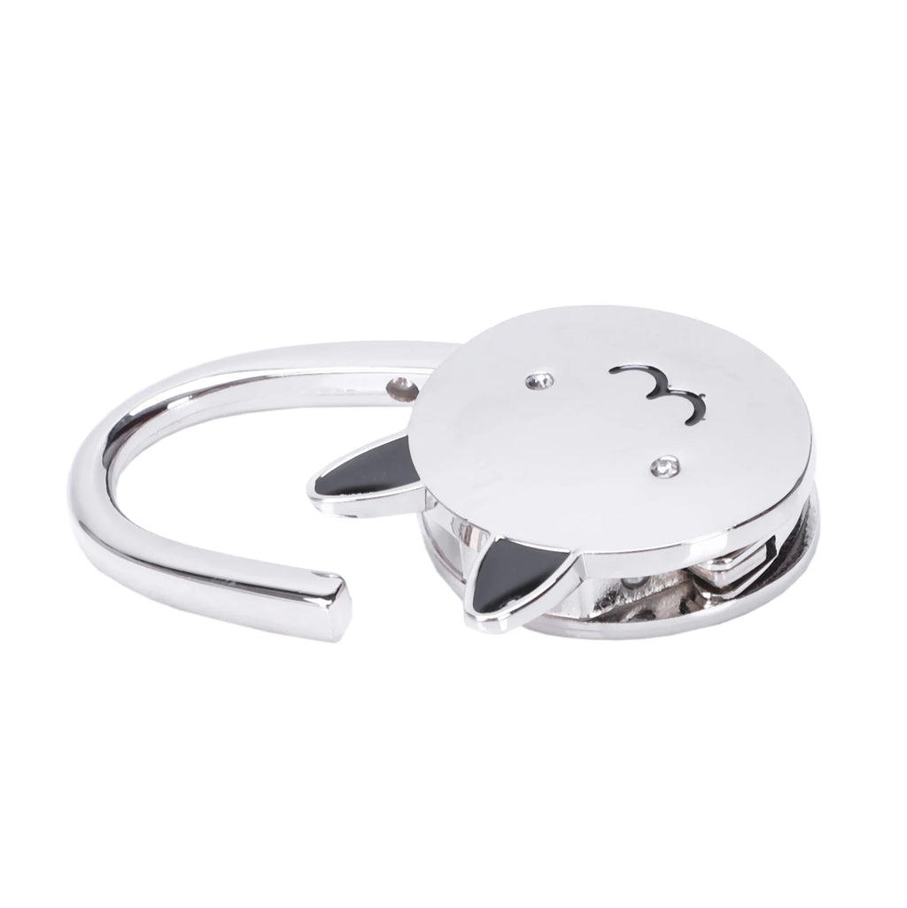 Black Cat Cartoon Foldable Silver Tone Handbag Hook Antislip Rubber Base