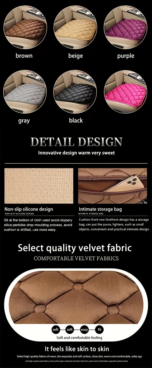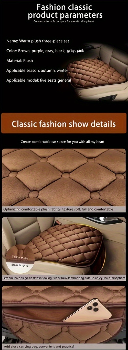 Diamond Pattern Plush Car Seat Cover Set - Universal Fit Warm Winter Automotive Seat Cushions, 3-Piece Vehicle Seat Pad Kit with Secure Buckle System for Car Interior Accessories