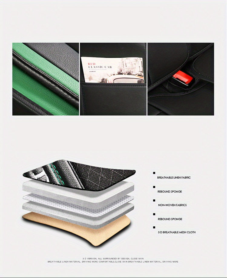Full Set Car Seat Covers, Sport Style, Universal Fit, Full Coverage, Breathable Mesh, Lumbar Support, Trendy Automotive Seat Protector, All-Season