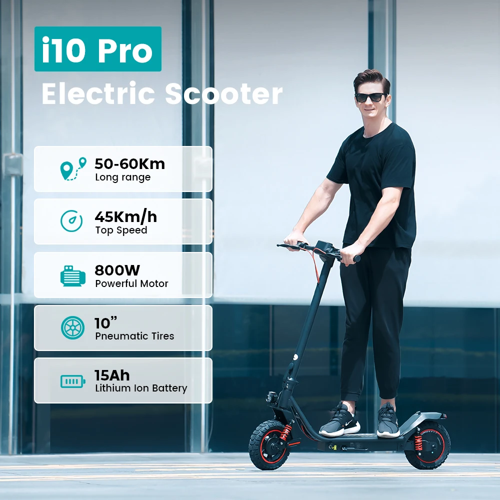 iscooter i10pro Electric Scooter 10 Inch Tire 800W 48V 15Ah Foldable eScooter Max speed 45km/h Range 60KM Kick Scooter With App