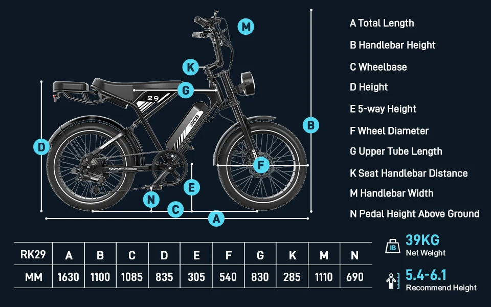 【It's all in the details】The RK29 e-bike is equipped with bright lights and brake lights, a high-capacity battery to support the bike's high endurance, a comfortable seat, a safe braking system, etc., all designed to ensure safety while providing customers with a comfortable experience.