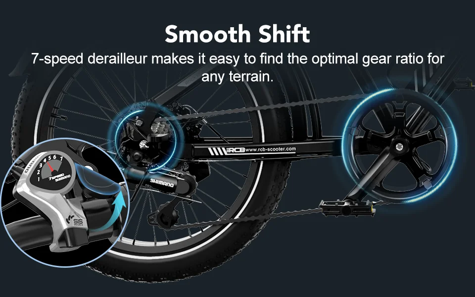 【Comfortable ride】 The mountain bike's 20*4.0 inch fat tyres support riding on difficult road conditions without having to worry about bumps, and the shock-absorbing seat gives you a smooth and comfortable ride.