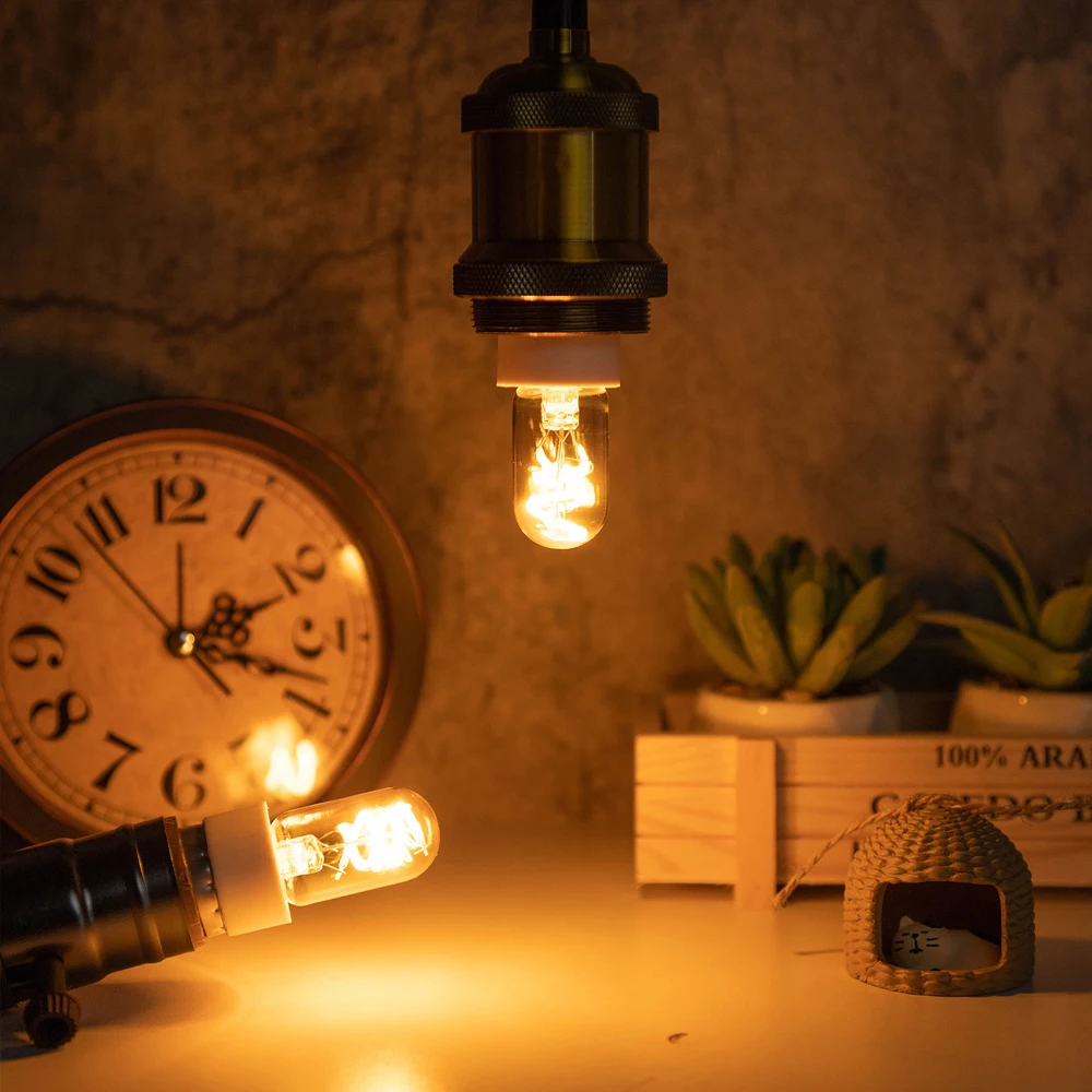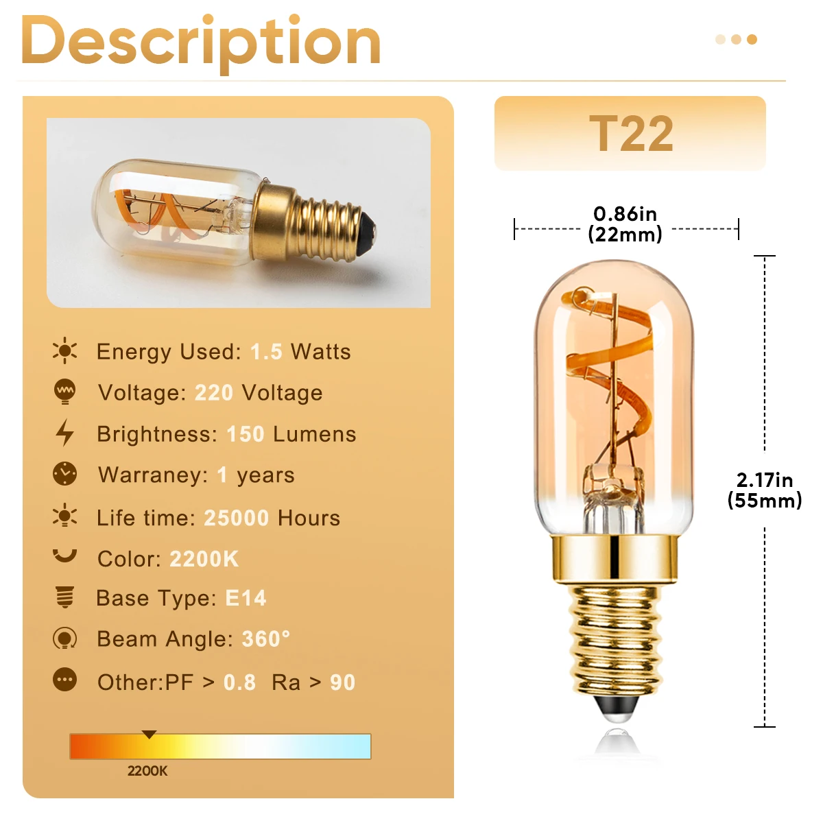 Dimmable T22 E14 Led Bulb 220V 1.5W Edison Spiral Filament Lamp Warm White Salt Lamps Retro Night Lights Mini Tube Light Decor