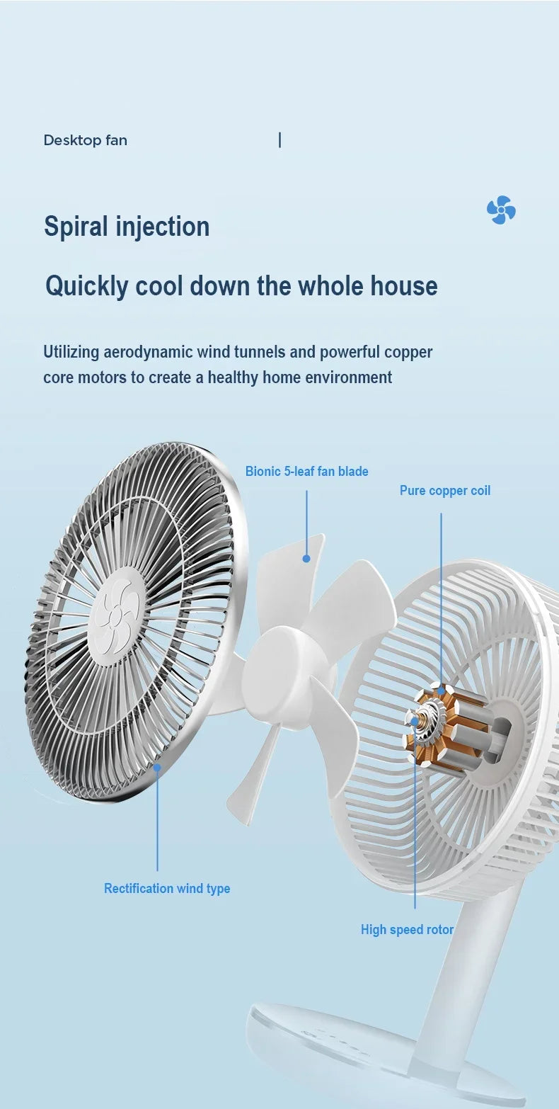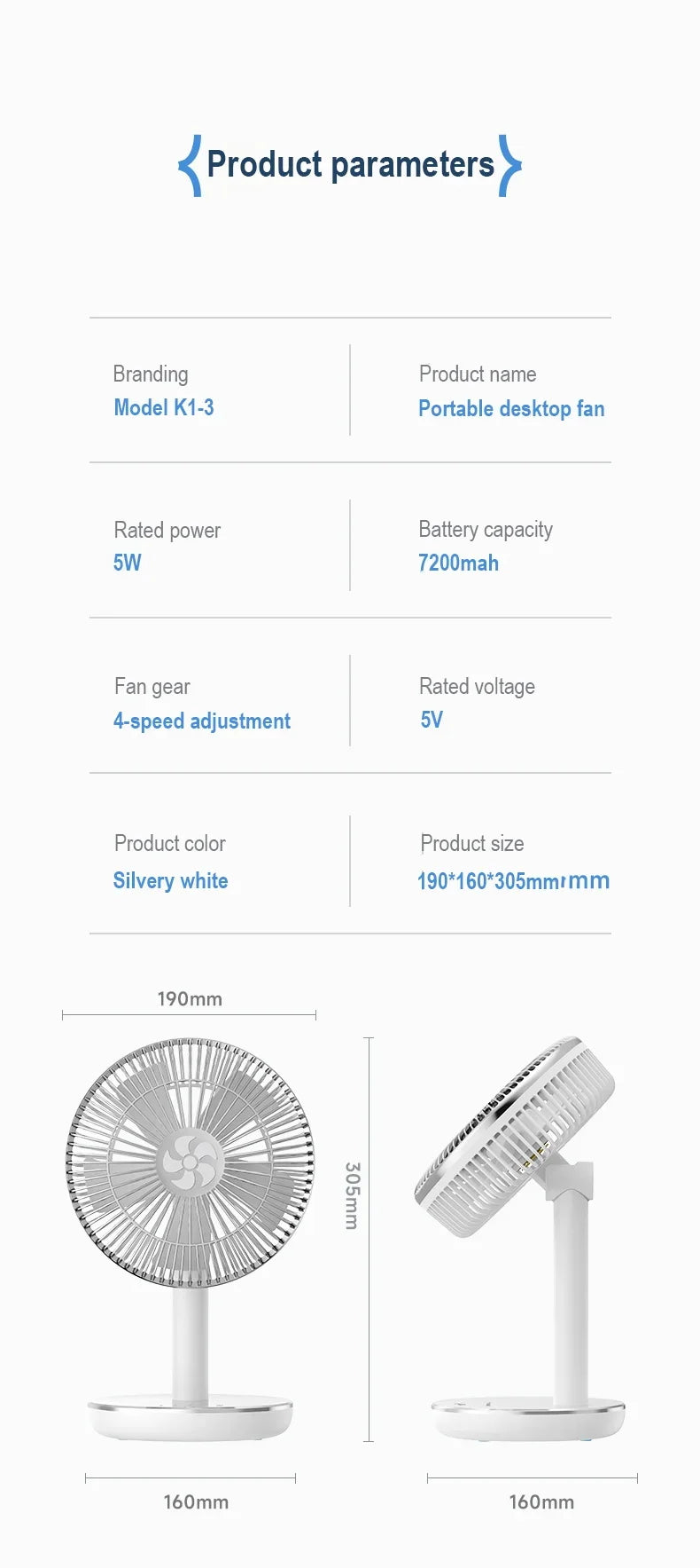 Fans Portable Desktop Fan Home Office Dormitory USB Rechargeable Small Electric Fan Air circulators High Wind Table Fan 7200mAh