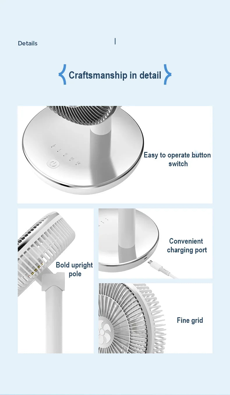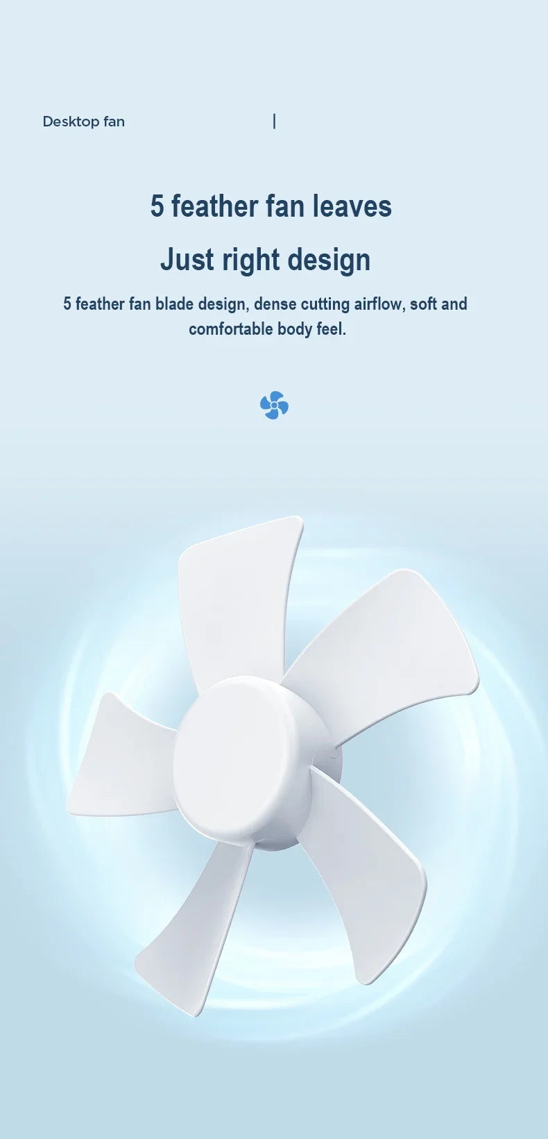 1. Simple body, four-speed quiet wind, 40 hours of long battery life, spiral 5-blade fan, aerodynamic wind tunnel, forming spiral airflow