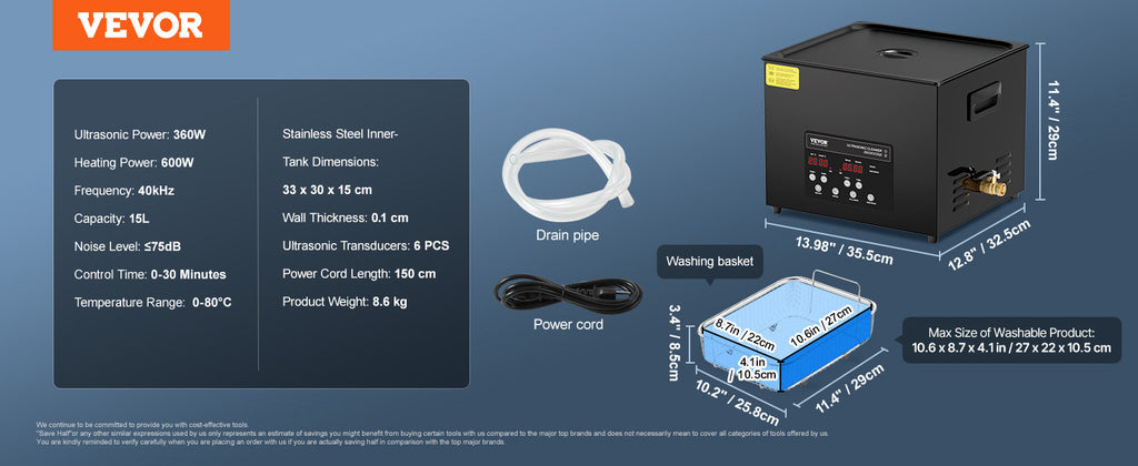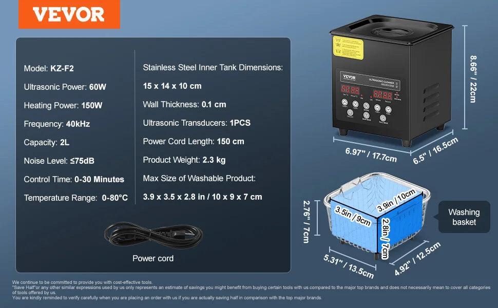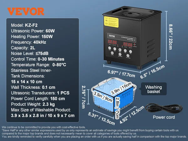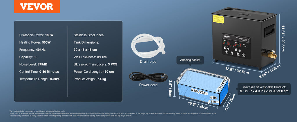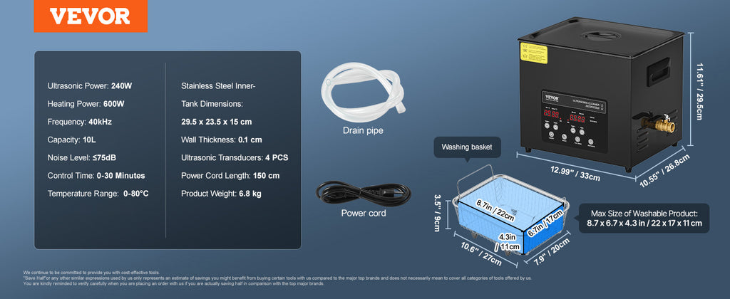 • Versatile Use: Ideal for cleaning jewelry, automotive parts, eyewear, and more. Whether you're a professional or an everyday user, the VEVOR Ultrasonic Cleaner is a reliable tool for all your cleaning needs.