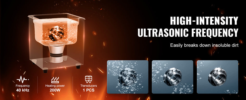 With advanced transducer technology, the 40 kHz ultrasonic waves create millions of tiny bubbles that reach deep into surfaces and crevices, removing dirt effectively without harming the item's appearance or quality.