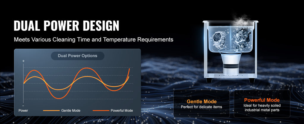 The degassing mode removes large bubbles for deep cleaning of internal holes and crevices, achieving precise, zero-angle cleaning and boosting cleaning efficiency by 30%. The dual power modes offer a gentle cleaning option to protect delicate items.