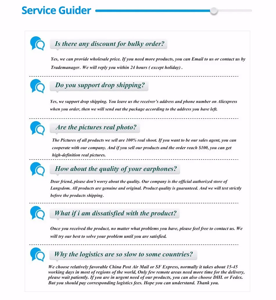 • Shipping Methods: We use trusted carriers such as FedEx, DHL, and USPS to ensure timely delivery.