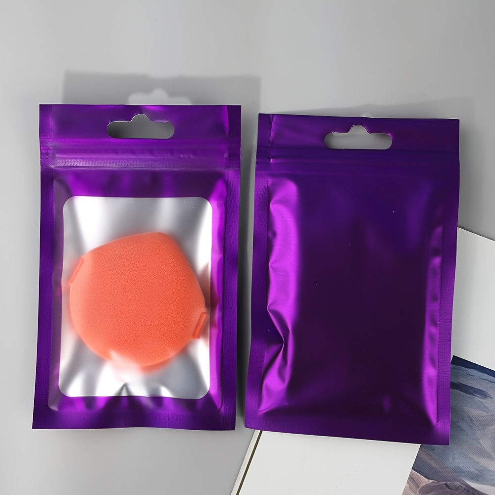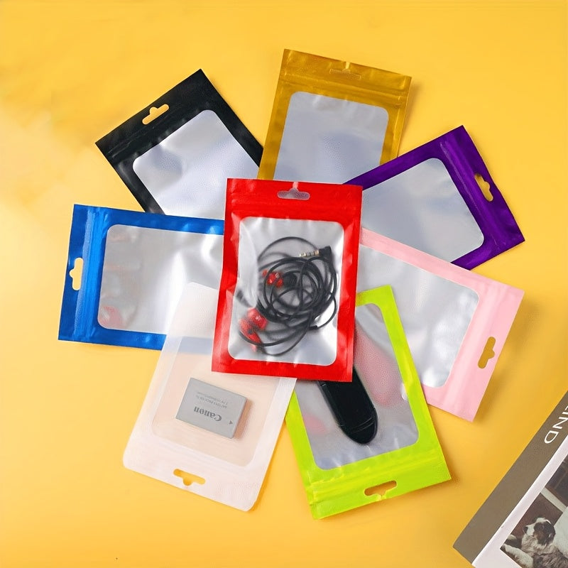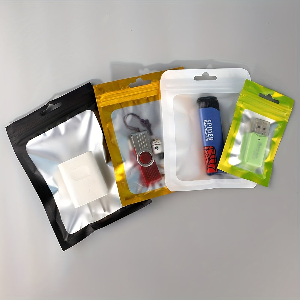 100-Pack Holographic Zipper Lock Resealable Bags, Moisture-Proof Aluminum Foil Polyester Film Flat Transparent Window Pouch for Electronics/Jewelry/Cosmetics Organization, 4 Size Options, Non-food contact