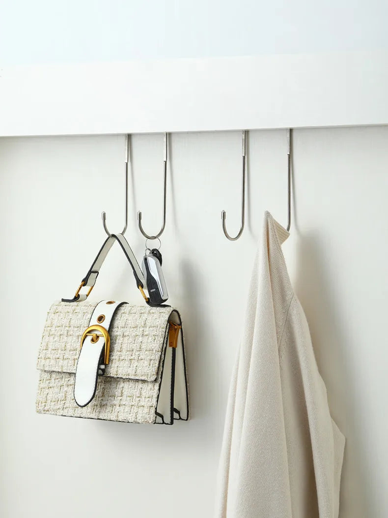 304 Stainless Steel Hook Free Punching Double S-Shape Hook Kitchen Bathroom Cabinet Door Silvery Type Coat Towel Storage Hanger