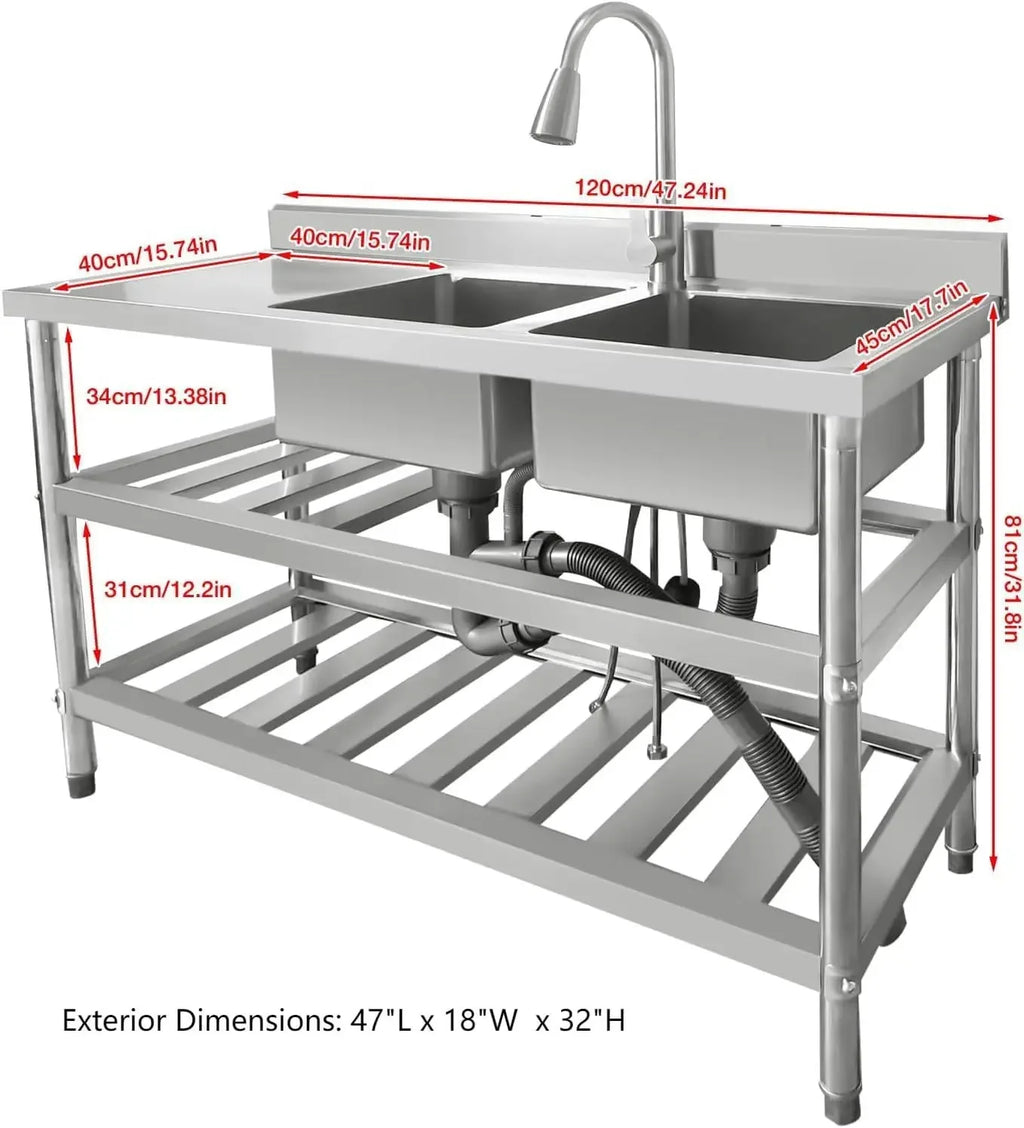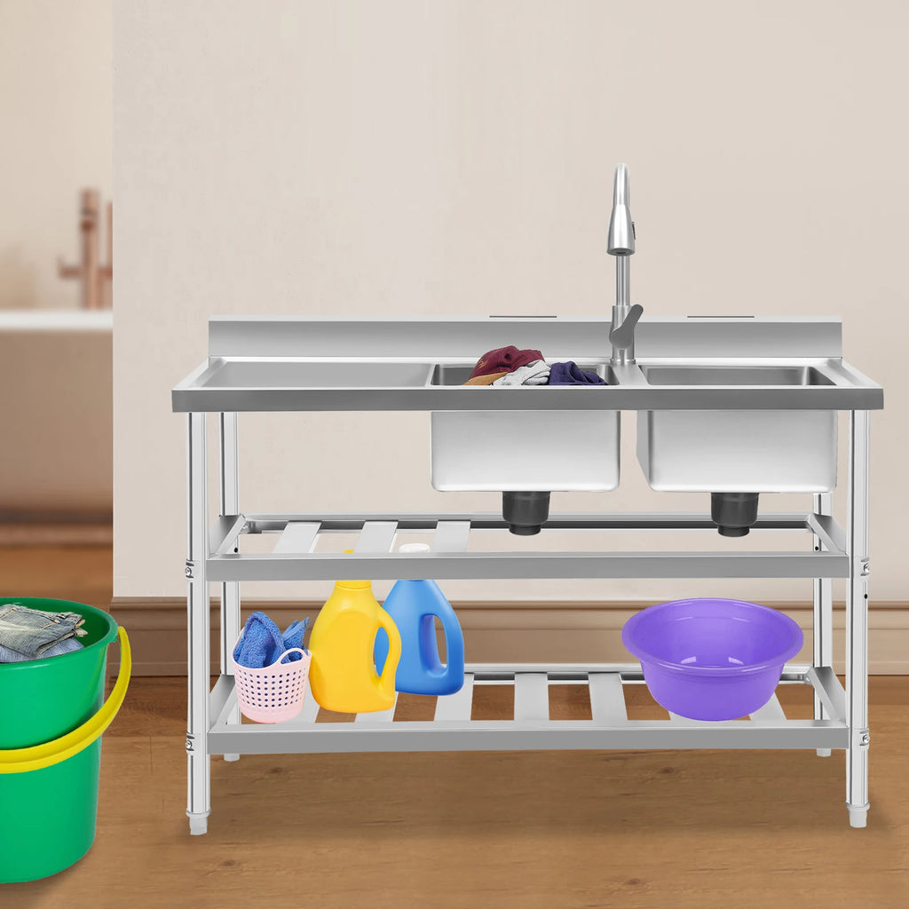 Free Standing Stainless-Steel Double Bowl Sink - Elevate Your Kitchen Experience!