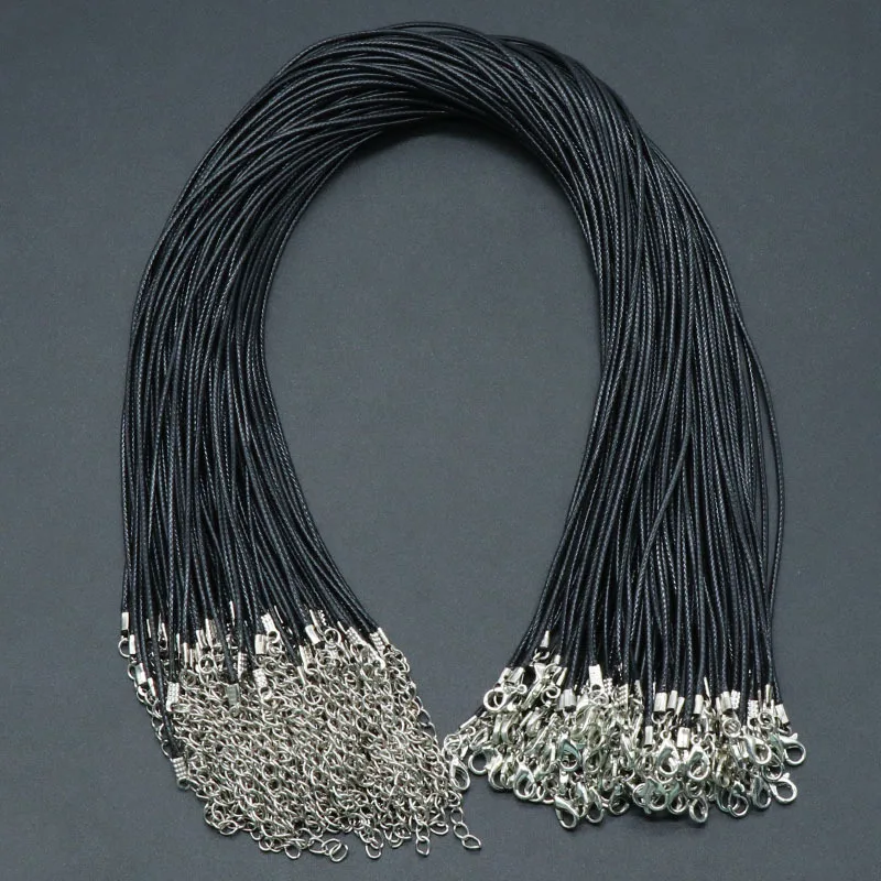 30pcs/Set 50cm Leather Rope Waxed Wire Necklace Rope Lobster Clasp Black Leather Pendant Lanyard Necklace Diy Jewelry Accessory
