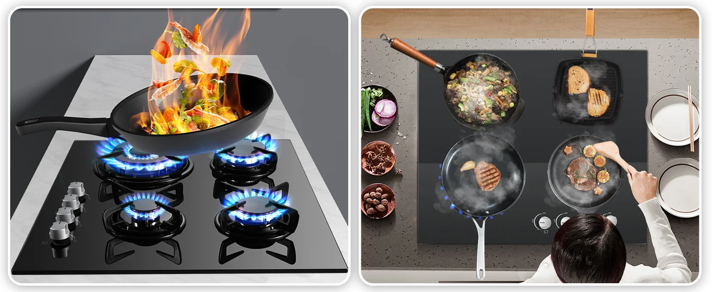 60cm Built-in Gas Hob 4 Burner | Auto Thermocouple & Safety Lock | 4-Zone Tempered Glass 8060W with Auto Ignition