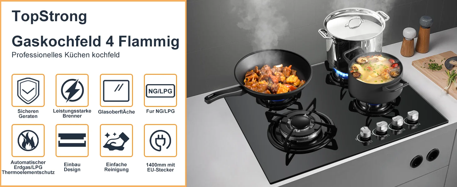 Equipped with an ignition protection that prevents further gas flow when the flame goes out to avoid the risk of gas leakage.