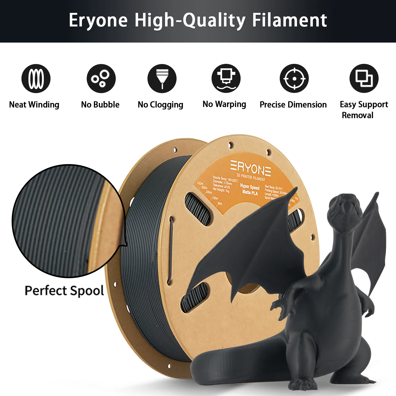 ERYONE Hyper Speed Matte PLA Filament 1KG 1.75mm ±0.03mm High Quality No Bubble Filament Neat Winding For 3D Printer New Arrival
