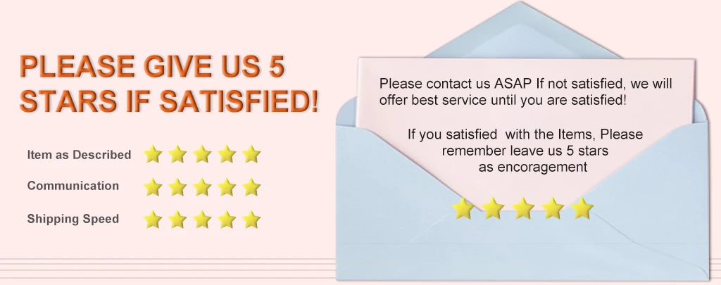 2.If satisfied with our product, please kindly leave us a positive feedback and 5 stars.