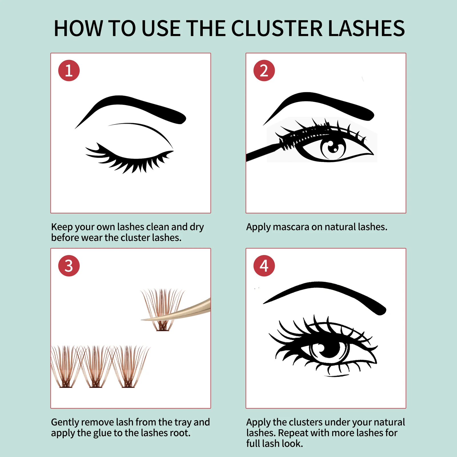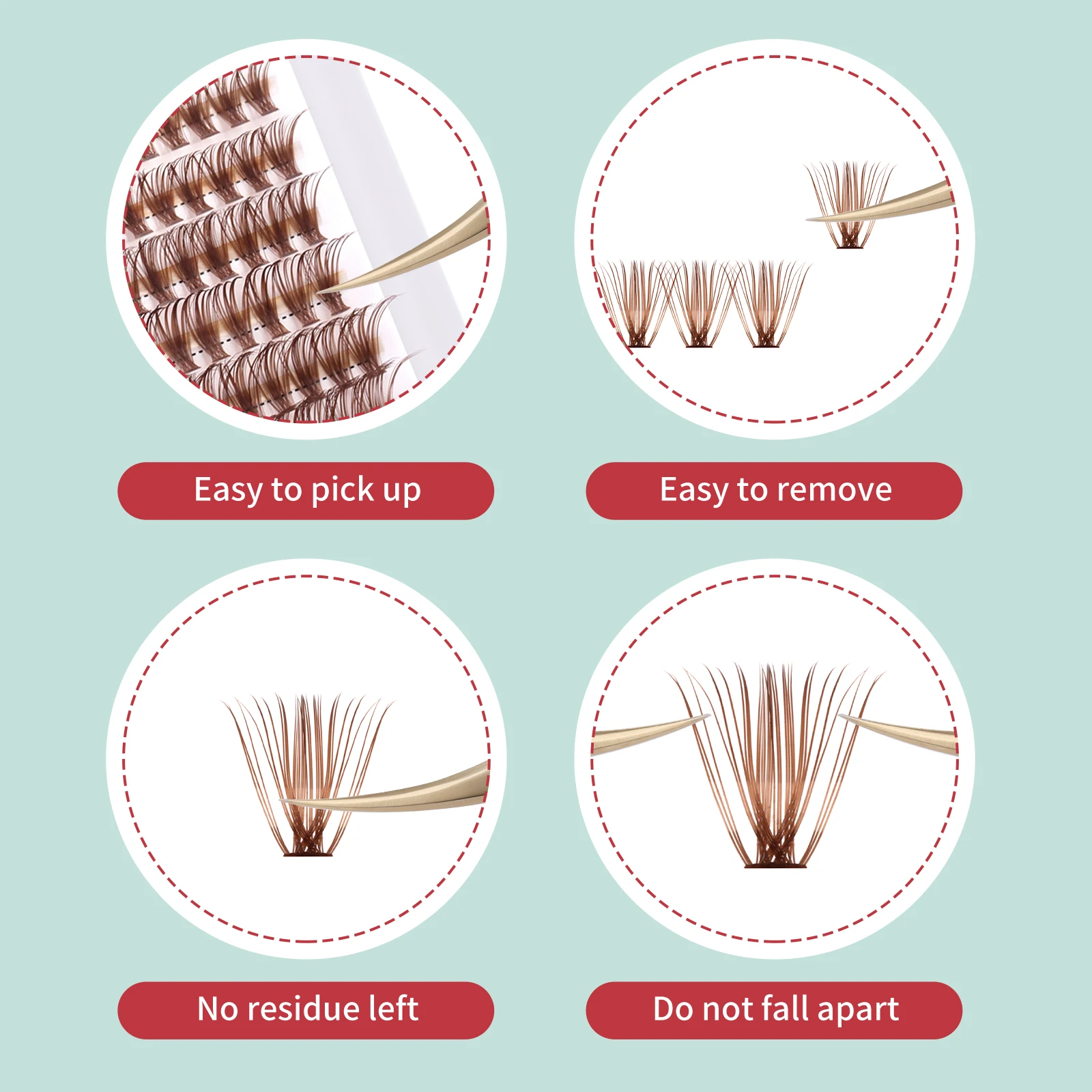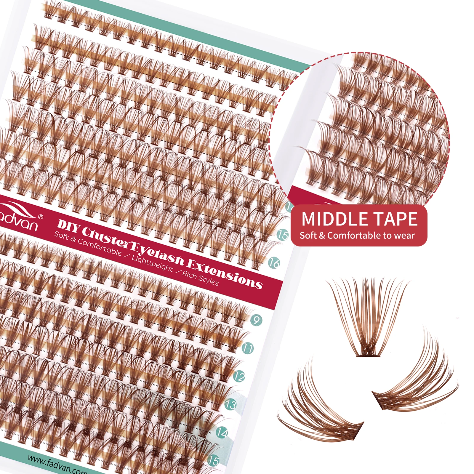 FADVAN Brown 14 Rows Diy Cluster Segmented Lash 9-16mm C/D Curl Upper Lower Fake Eyelash Professional Heat Bond Eyelashes