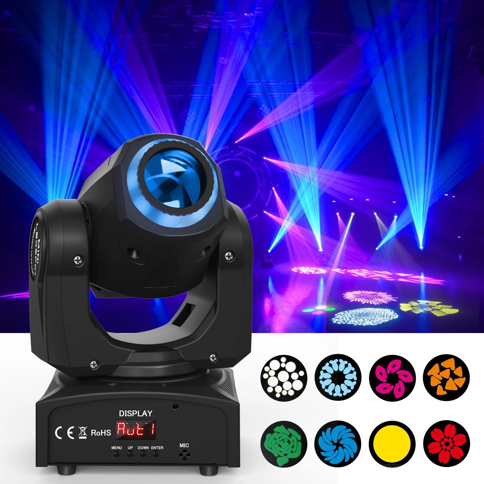 Fieryzeal 120W Beam Moving Head Light 8Patterns RGB Strobe Effect Lighting LED Spot Stage Light for DJ Disco Show Concert Party