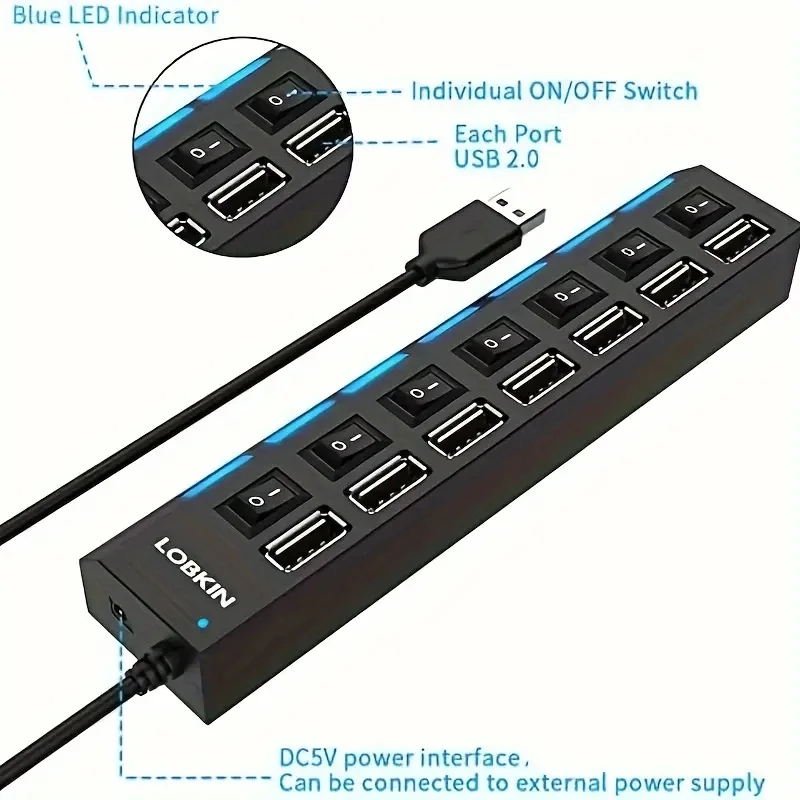 High Speed 4/7 Ports USB HUB 2.0 Adapter Expander Multi USB Splitter Multiple Extender with LED Lamp Switch for PC Laptop