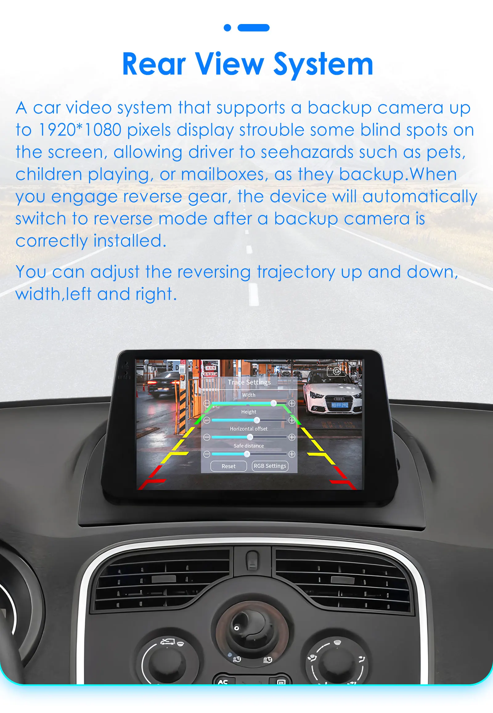 The car radios support reverse rear view display. When the car is in reverse mode, the radio will immediately switch to the rear screen of the car to ensure your driving safety.