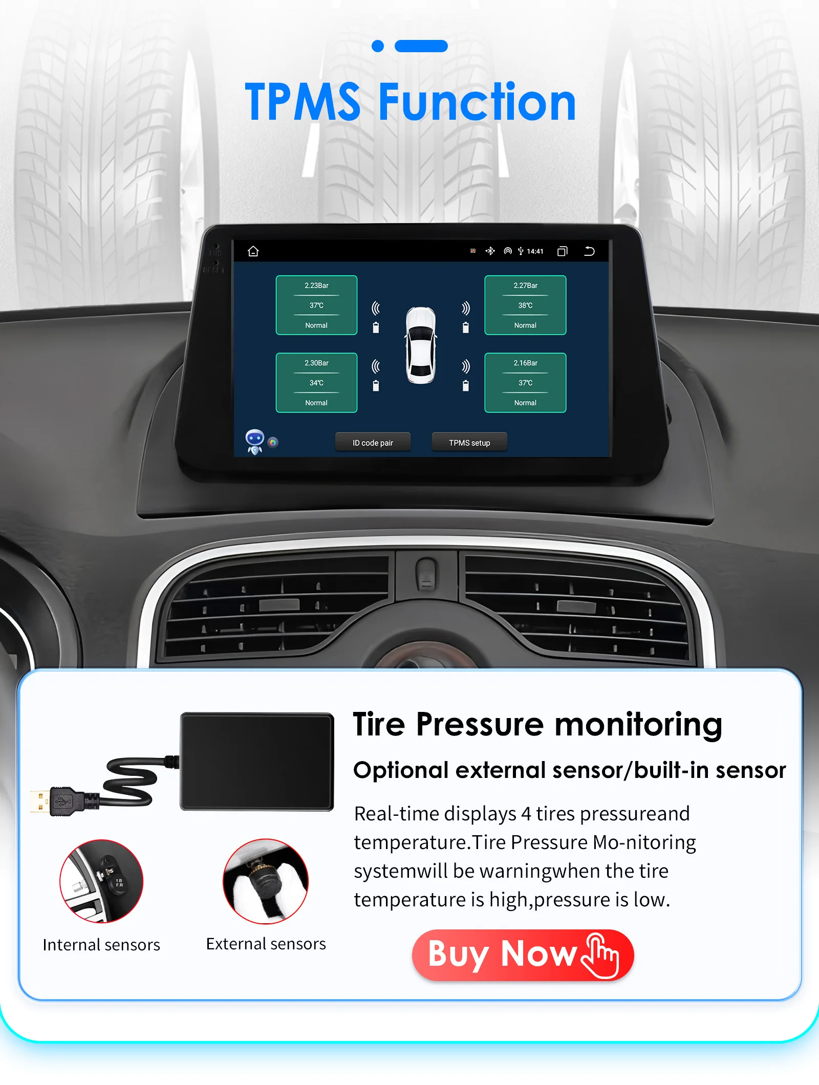Support USB tire pressure detection: The package does not include tire pressure detection. You can click the image below to buy it.