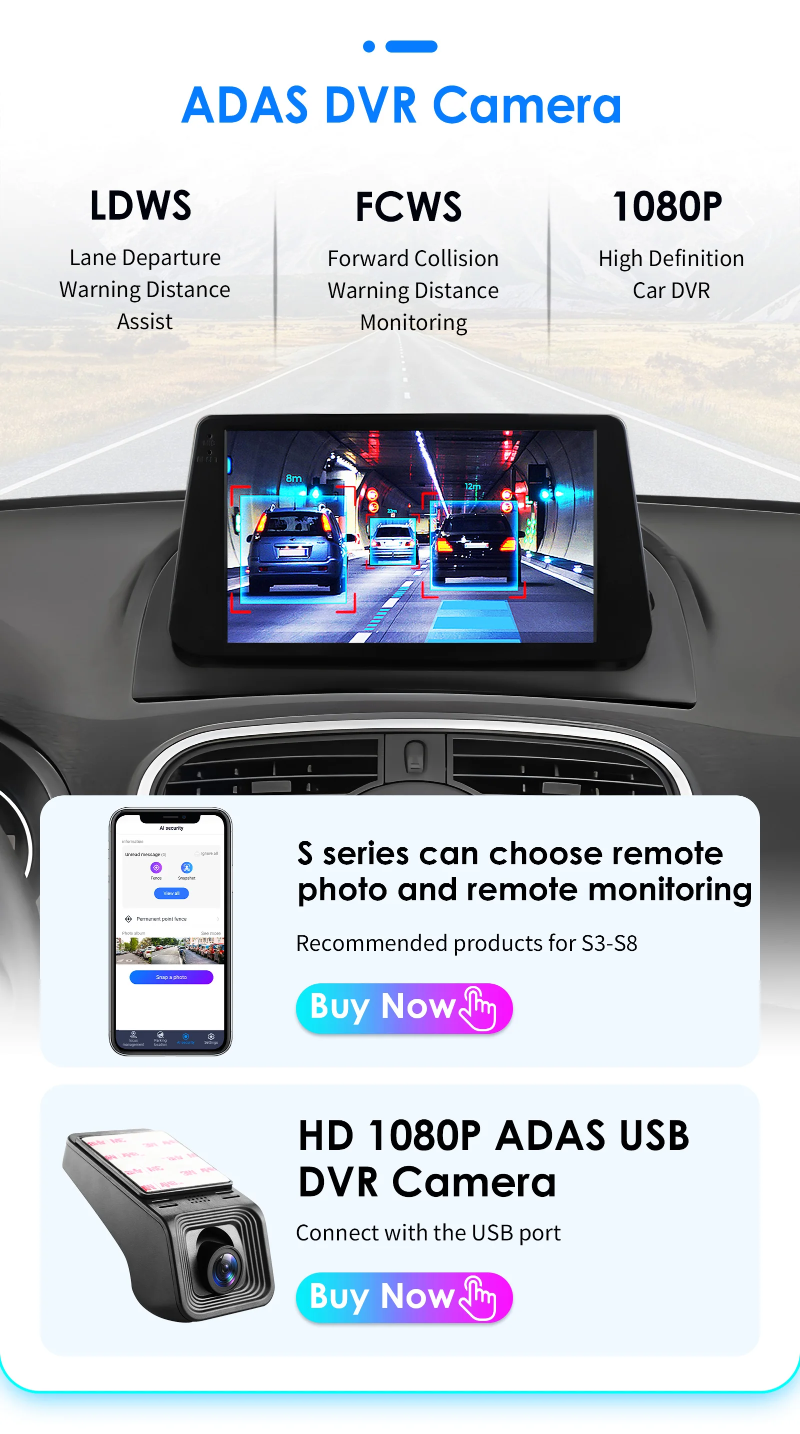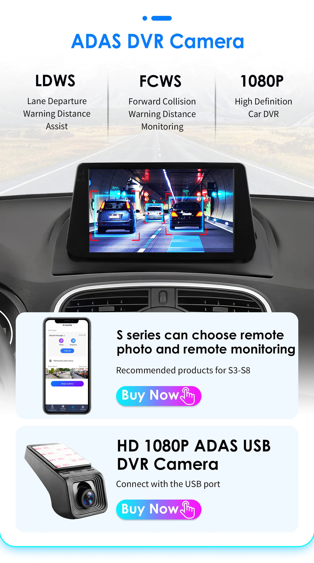 Support connection to ADAS DVR. ADAS DVR has multiple built-in assistive driving technologies,