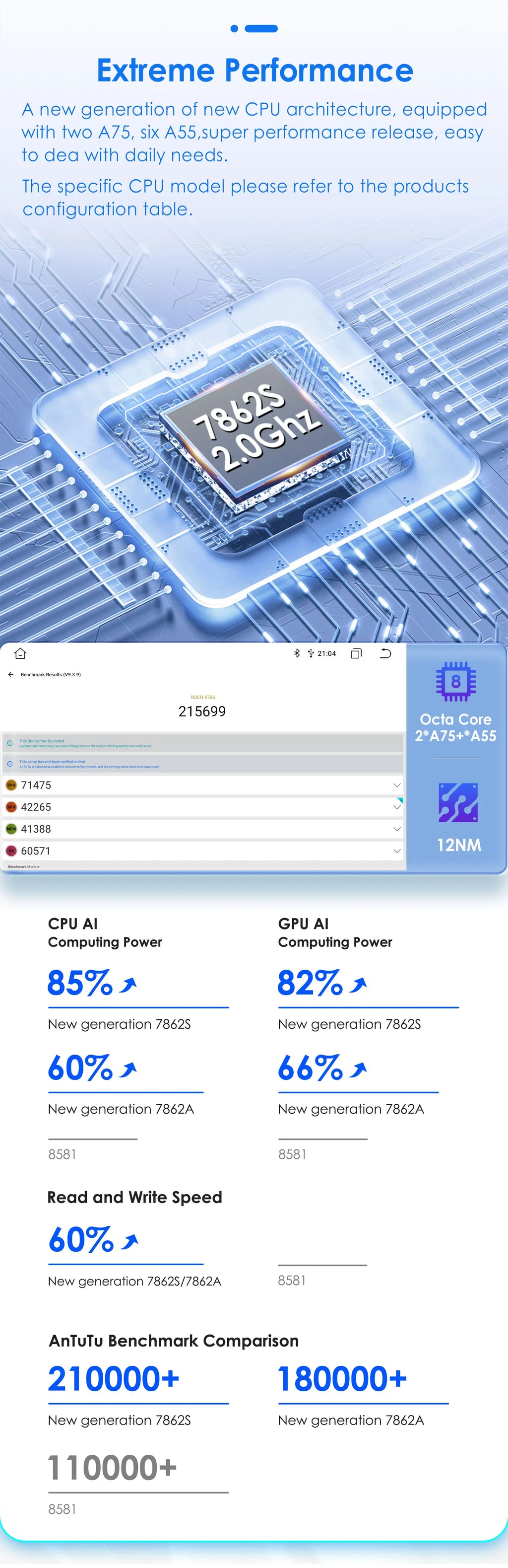 A new generation of new CPU architecture, equipped with two A75, six A55,