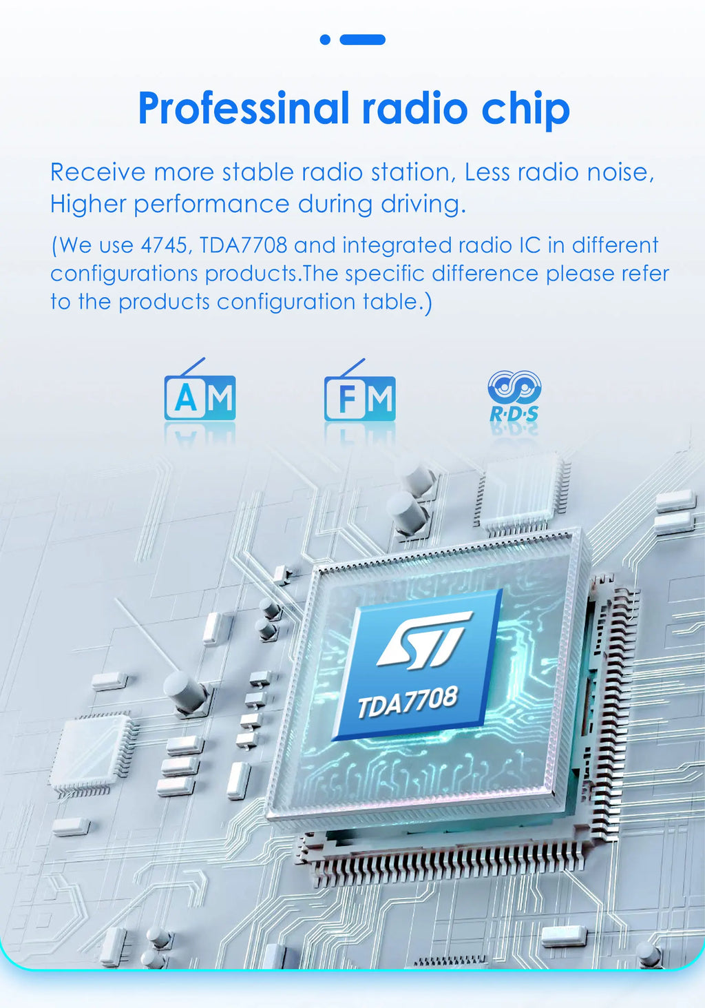 The radio has a built-in RDS function, especially for European users, it automatically selects the stable frequency of the radio station being listened to, Receive more stable radio station, Less radio noise, Higher performance during driving