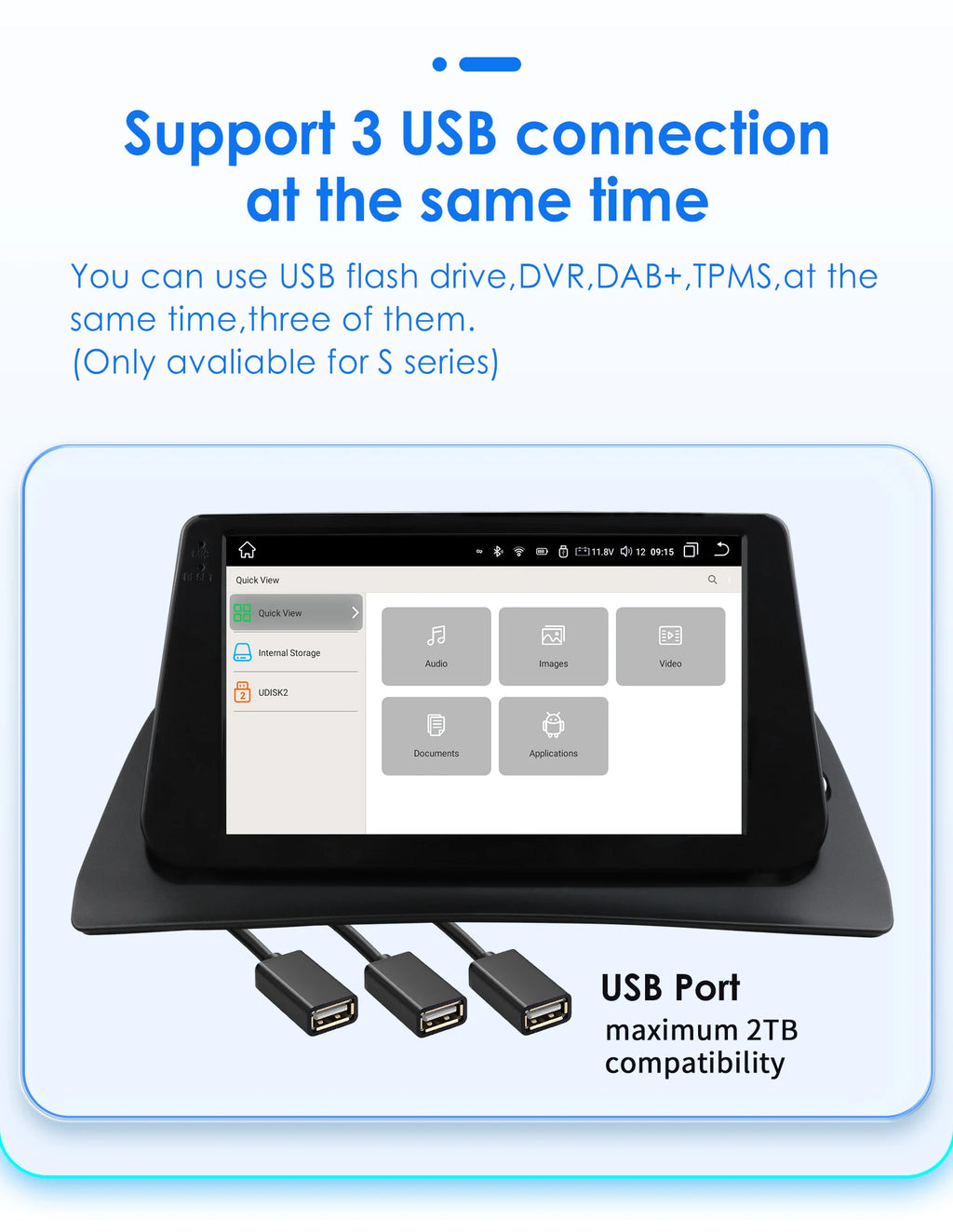 You can use USB flash drive,DV R,DAB+TPMS,mobile