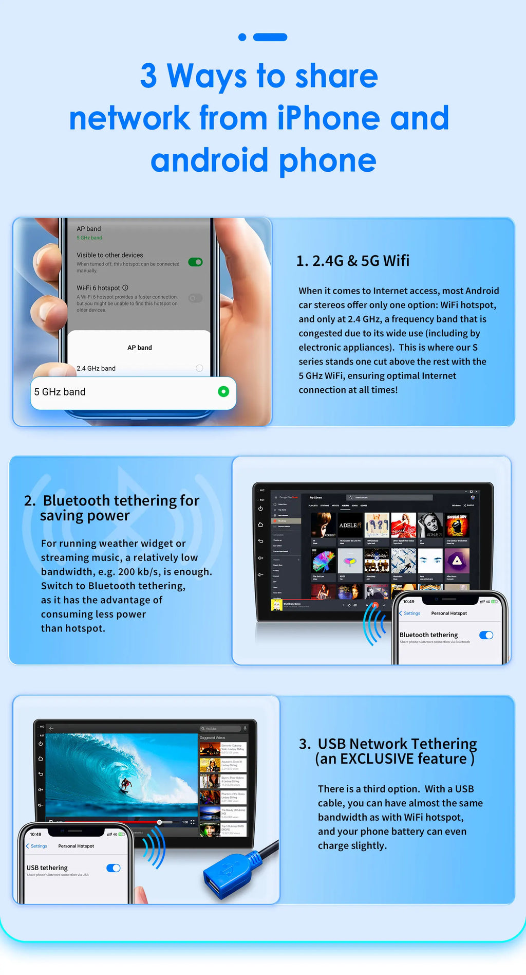You can use some of your phone's features directly on the radio. For example: make/receive calls, mobile phone online maps, etc. Make your driving safer and more fun.
