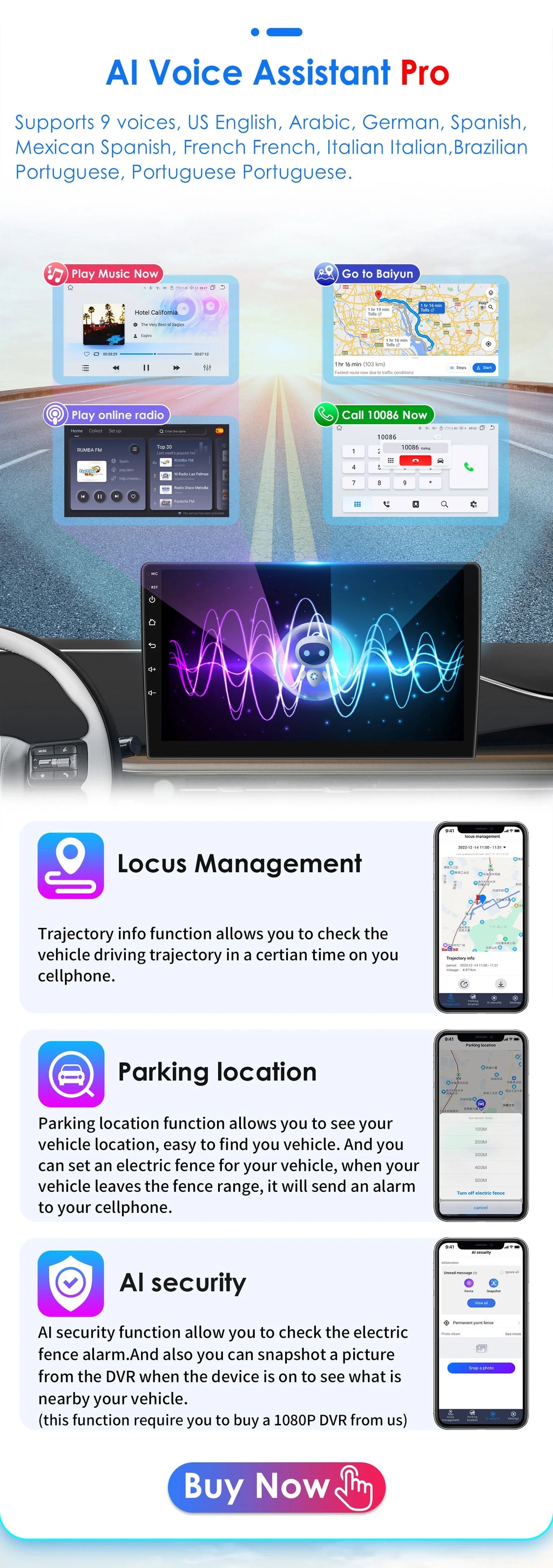 The radio supports intelligent voice control function. However, you will need to purchase an additional voice control activation code. If you need,you can click "Buy Now>>"
