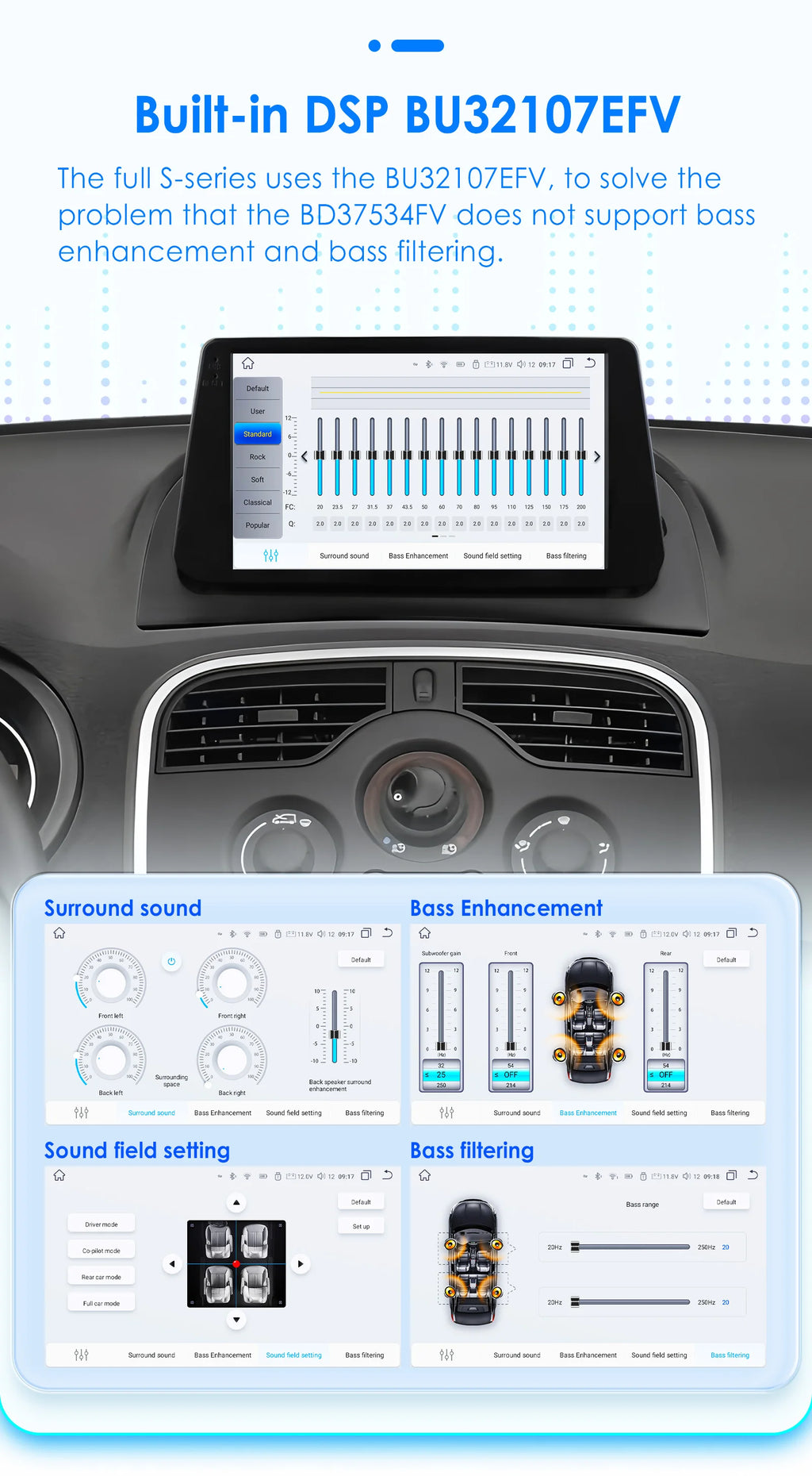 We use BU32107EFV and BD37534FV DSP IC in different configurations products.