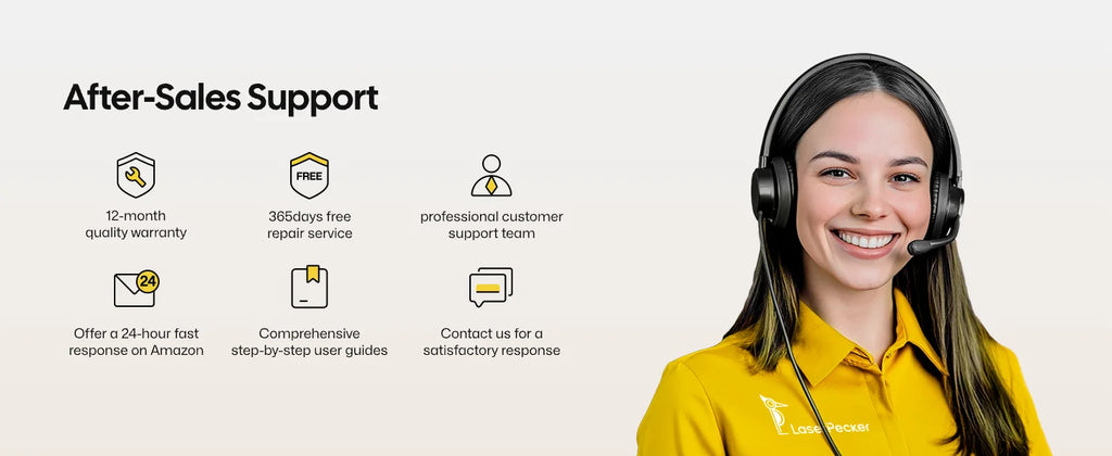 4:Completely Friendly for Beginners: 100% tested on 10+ materials. Get free engraving templates (animals/festivals, etc.) + 24/7 exclusive after-sales support for beginners.