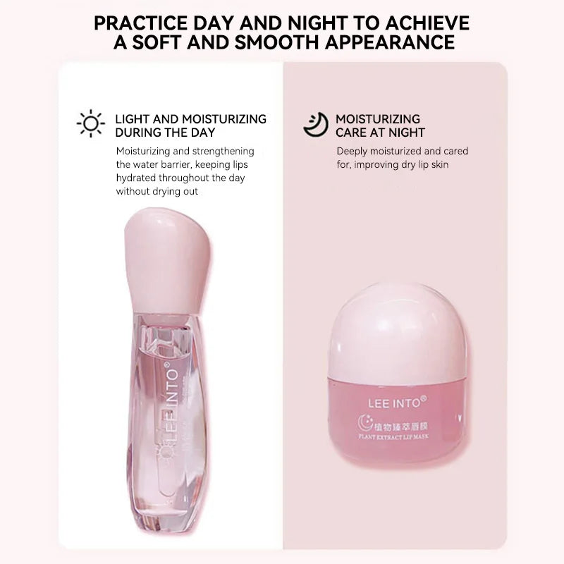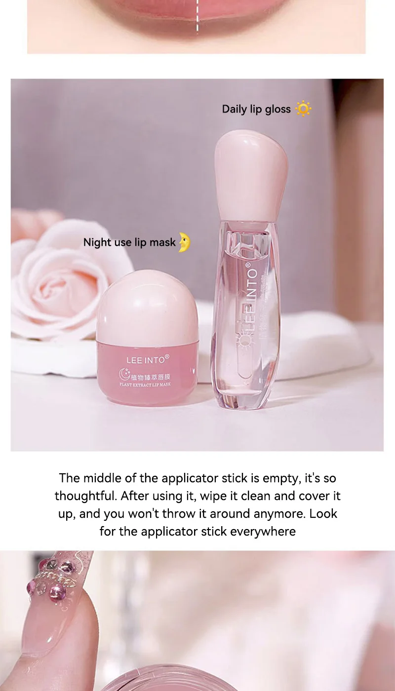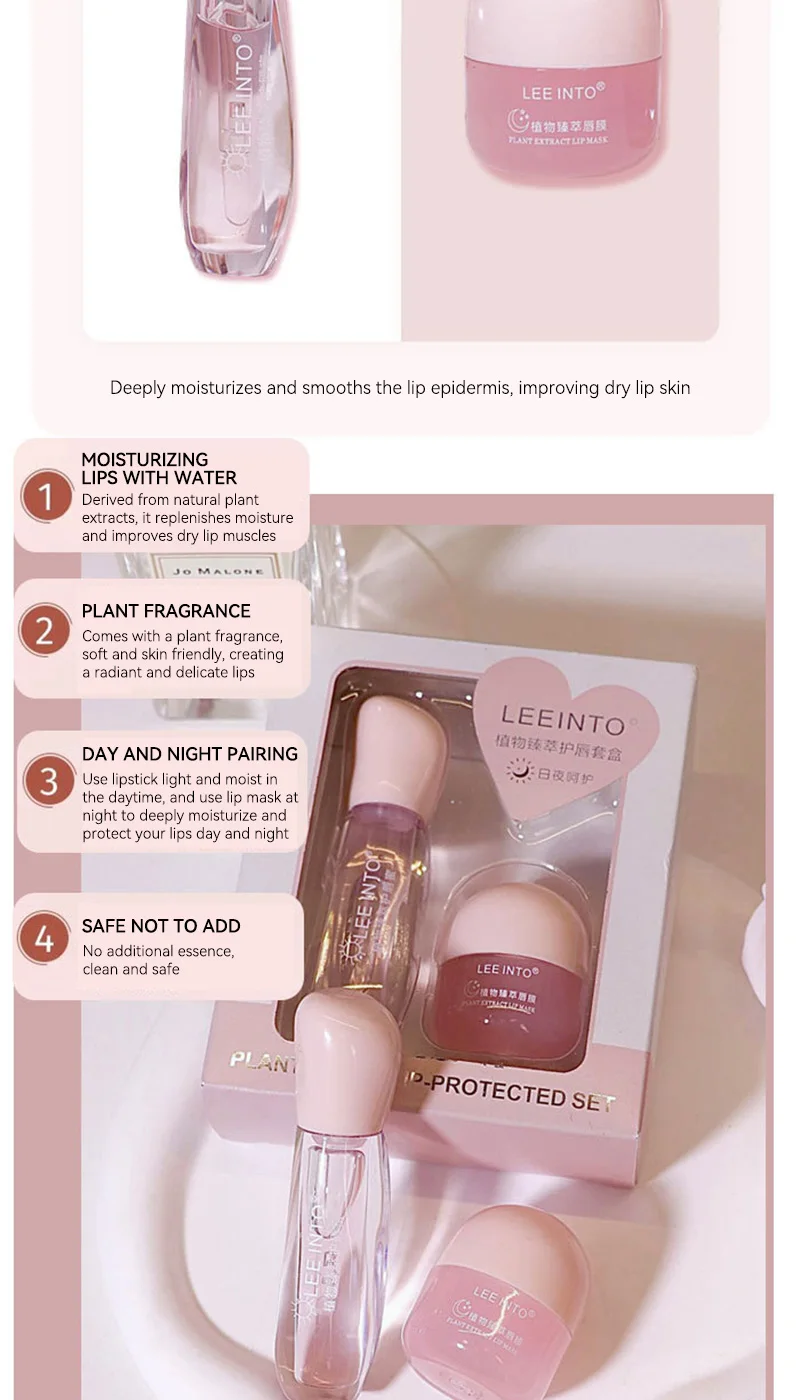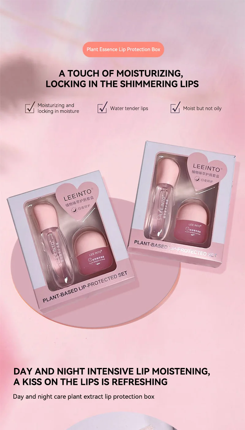 Leeinto Plant Essence Lip Care Set: Moisturizing, Long-Lasting Nourishment, Gentle Formula, Lightweight Texture, Lip Gloss, Lip Mask, Enhances Complexion, Pre-Makeup Primer, Essential for Daily Commuting and Dating, Night Car