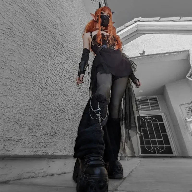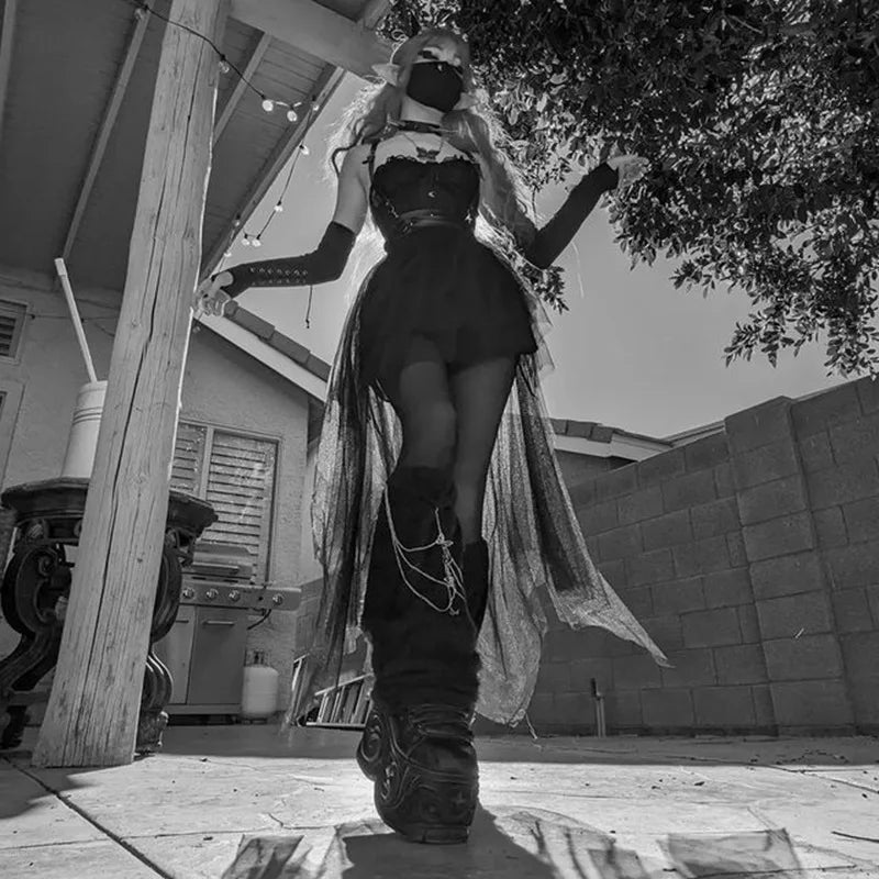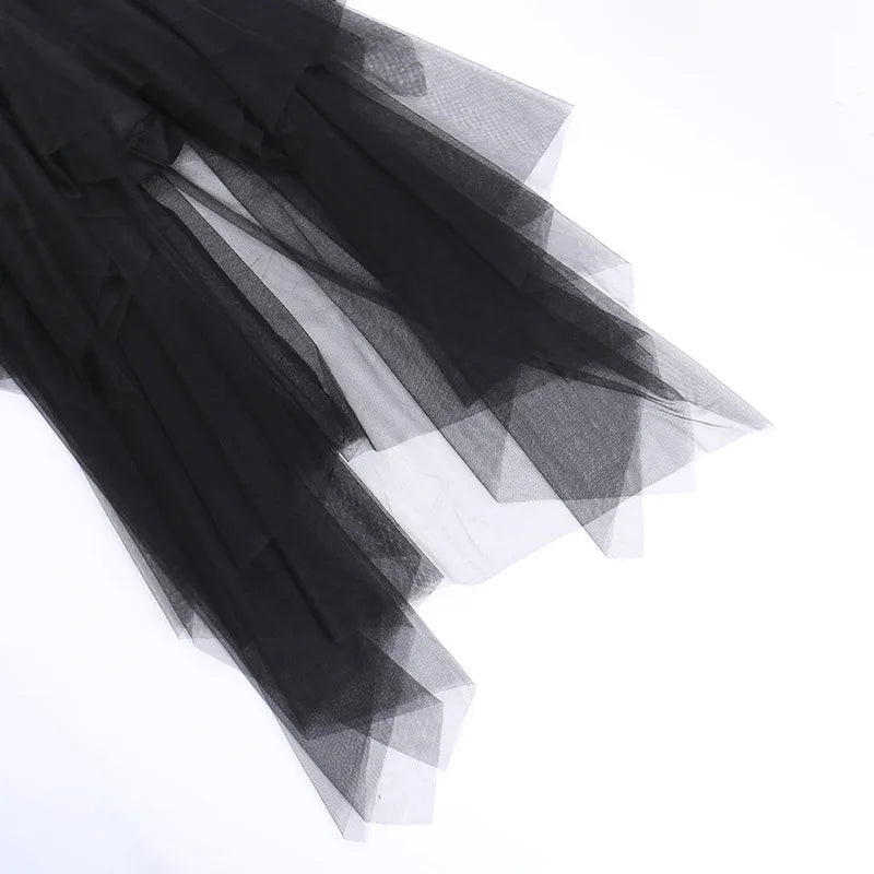 Sexy Net Yarn High-Waisted Irregular Skirt for Women Summer New European and American Gothic Style Versatile Casual Skirts