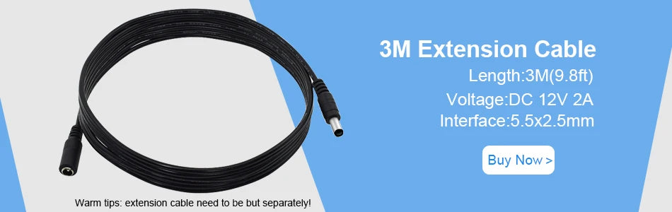 The original power cable for the camera is shorter than 1 meters , if you need a longer cable , maybe you need this 3m extension cable , you could buy it together .