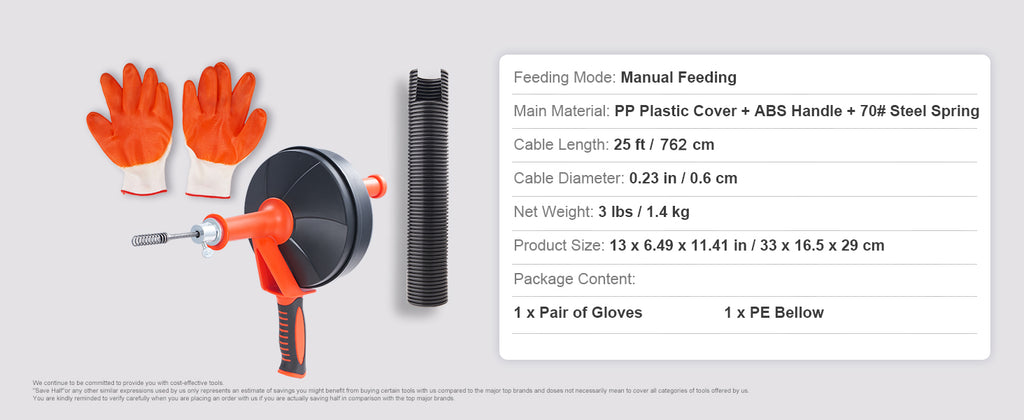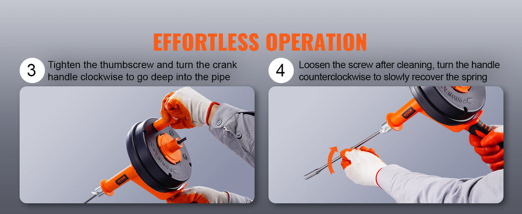 Easy to Operate: The spring length can be easily controlled and fixed by adjusting the thumb screw in a positive or negative direction. The drum storage design is clean and hygienic. No more knotted or messy springs visible. The attached user manual will teach you how easy to use our drain cleaner with no professional training needed.