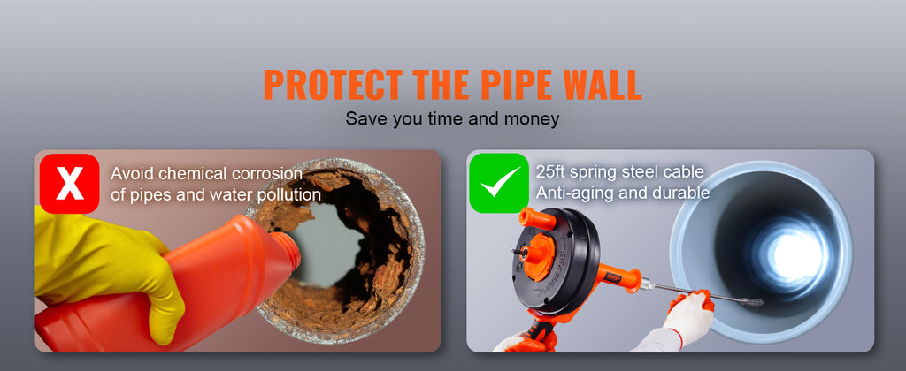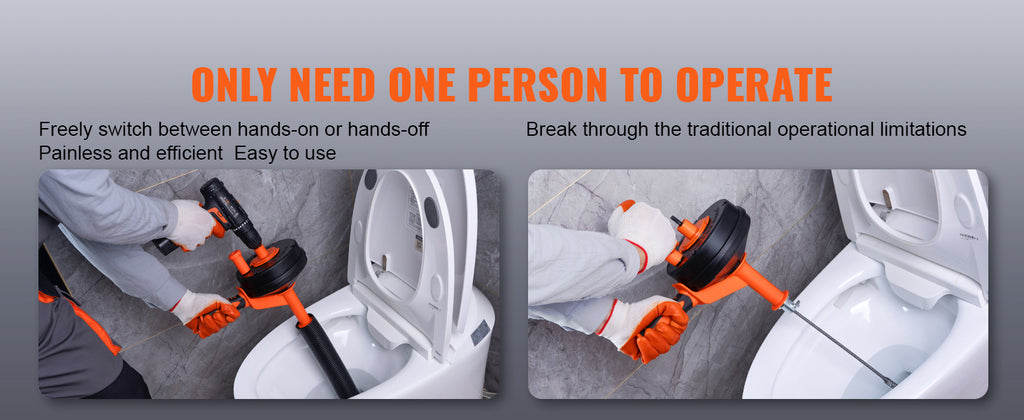 Used With Electric Drills: Breakthrough operation limitations! Equipped with an integrated electric drill adapter head, our drum auger plumbing drain snake can be adapted to most electric drills. Excellent hand/electric dual-use design is easy and efficient for you to remove blockages. A non-slip handle makes sure a stable operation. Even teenagers can also easily operate.